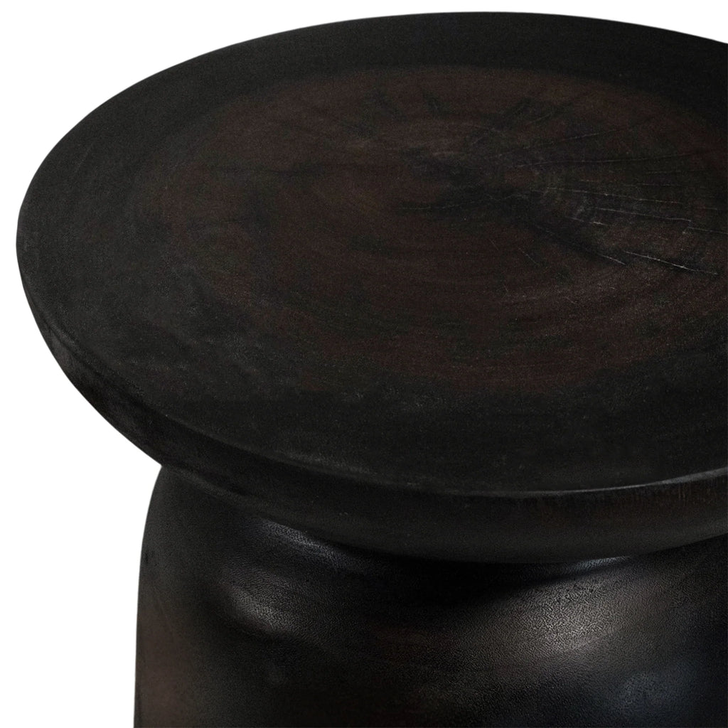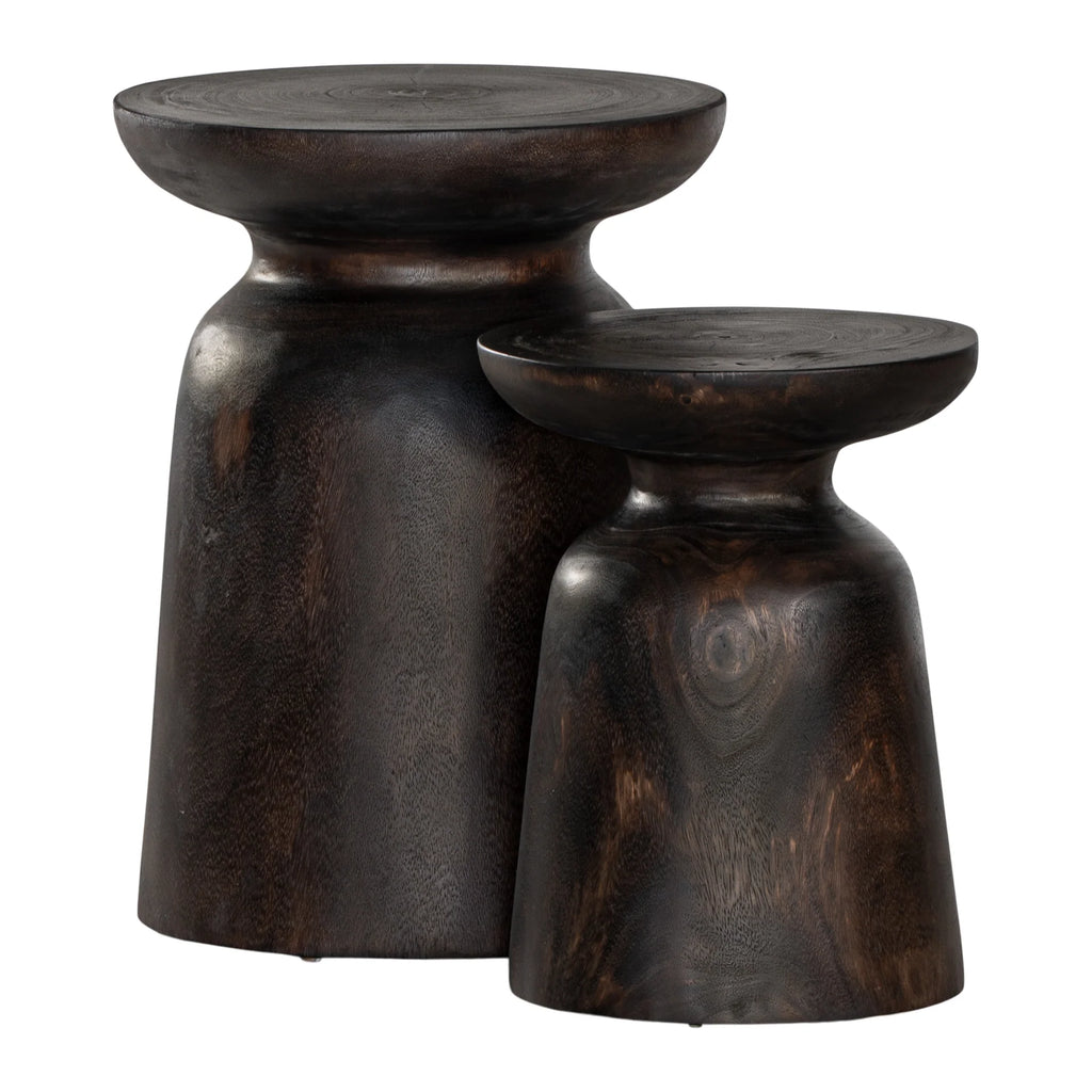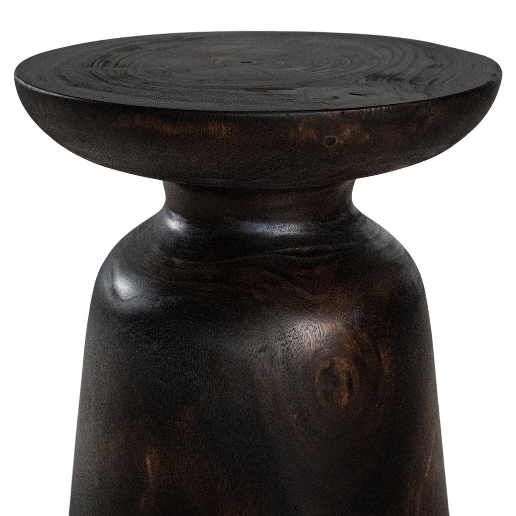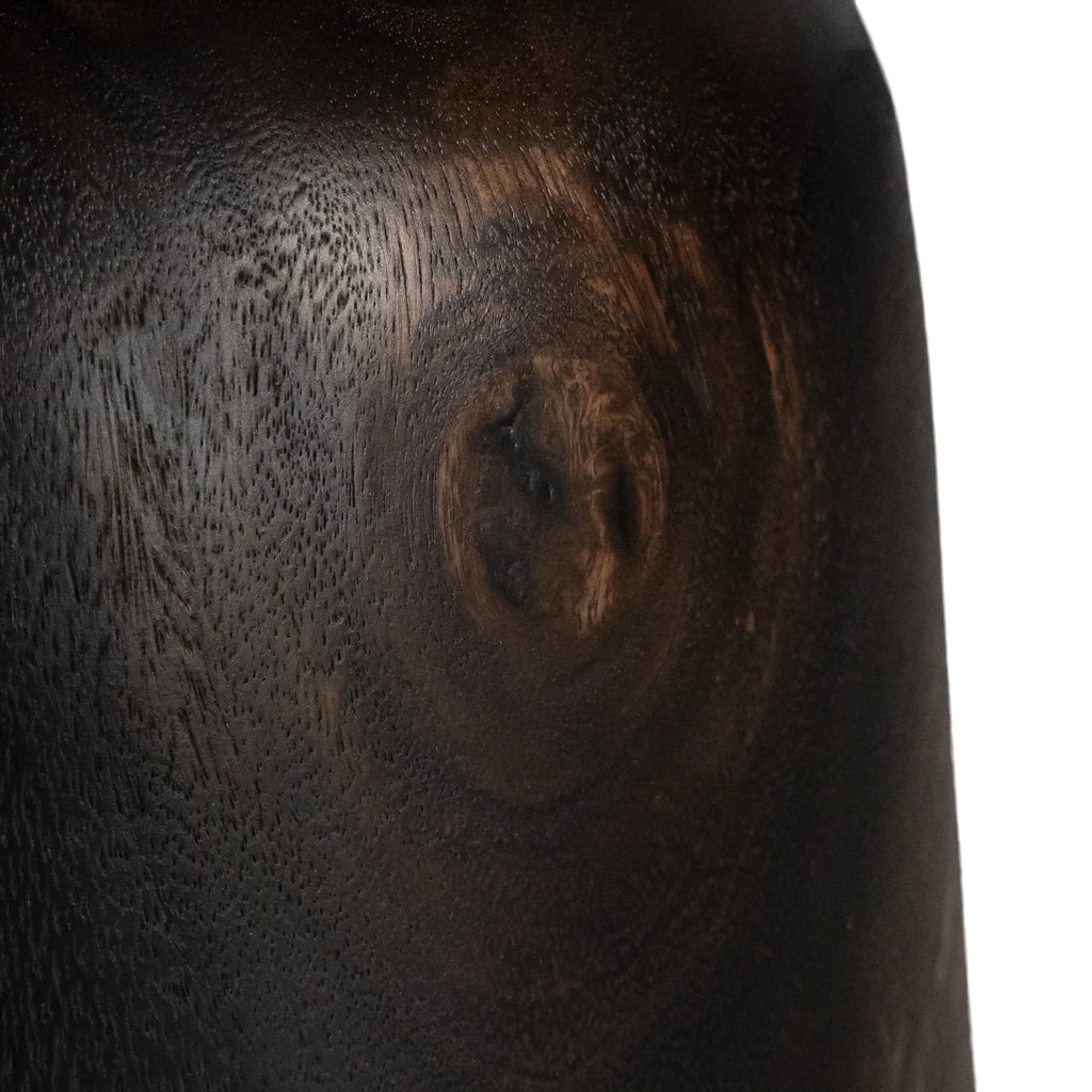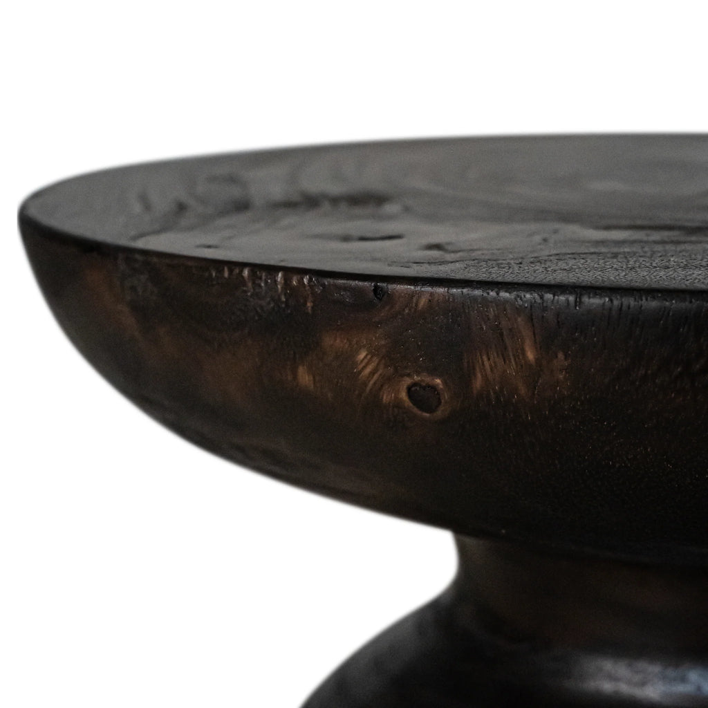 The Akoni Side Table is hand-carved from solid munggur wood, its sculptural form enhanced by our exclusive Truffle tone – a bespoke blend of chocolate hues and Japanese black that highlights the natural timber grain. The finish creates a rich, tactile surface with warmth and depth, ensuring each piece carries its own unique character.