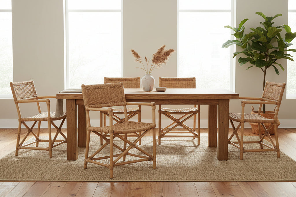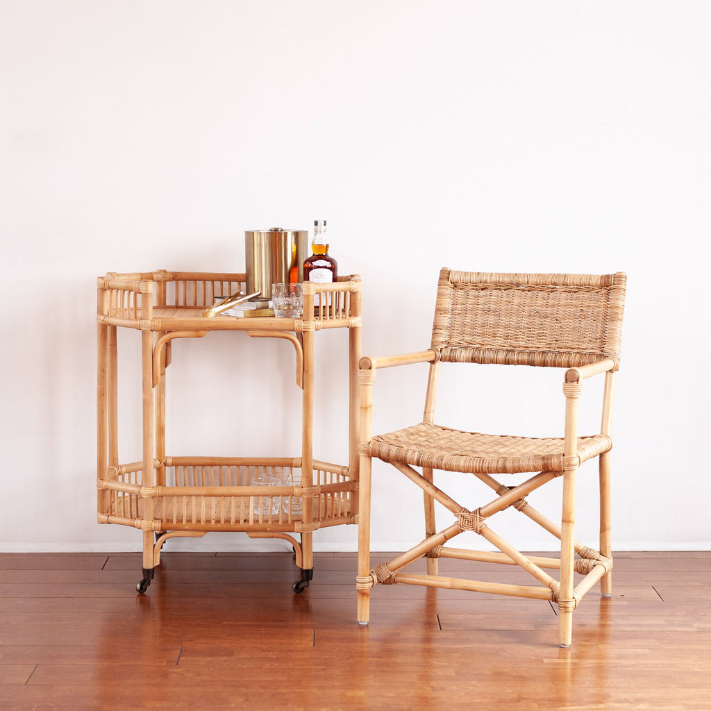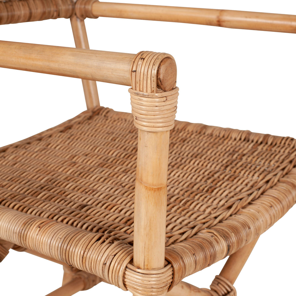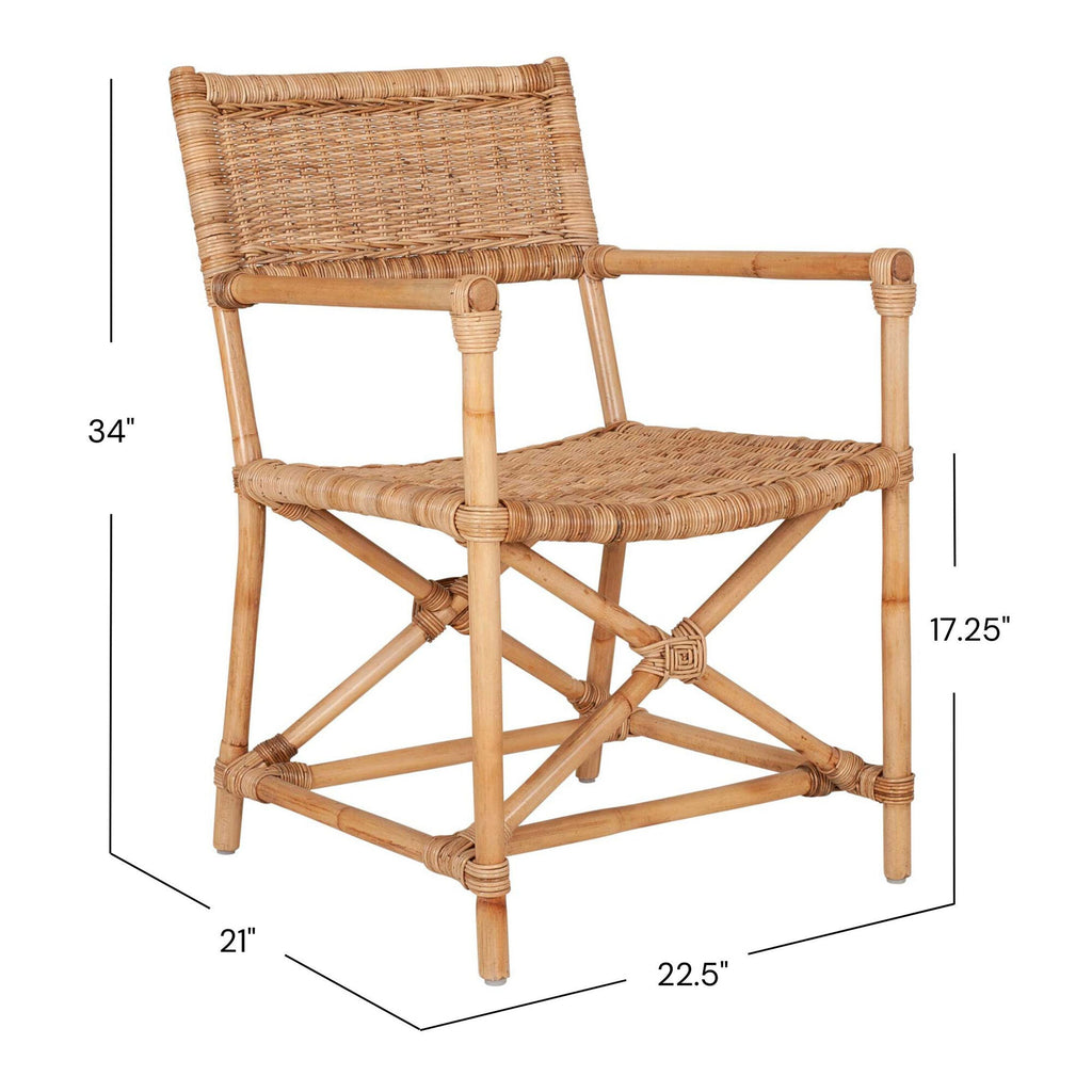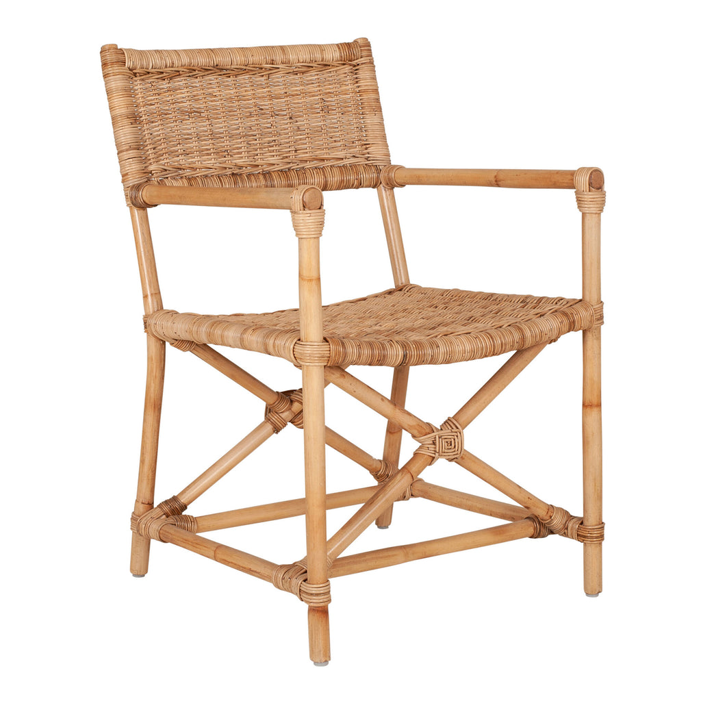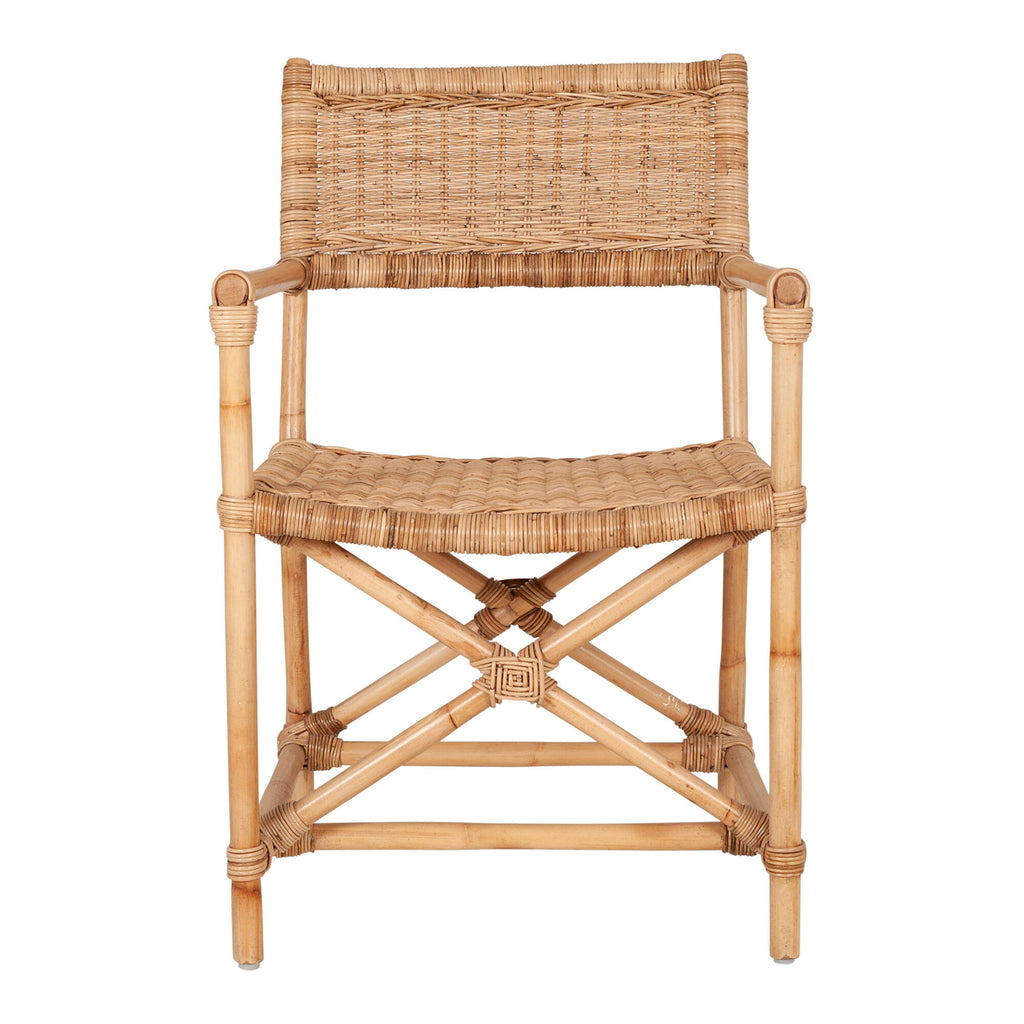 This reinterpretation of modern safari chairs fills a comfortable silhouette with dimensional texture. Pole-style arms that lead into a unique X-crossed base of legs elevate its rich visual character. This natural-fiber showcase is a relaxing addition to coastal, boho and contemporary spaces.