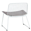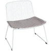 The Alto Rebello Lounge Chair White is a powder coated white chair featuring a bent steel frame in a stunning geometric pattern. This thoughtfully crafted chair features a comfortable low oatmeal upholstered fabric seat cushion, and is designed for lounging.