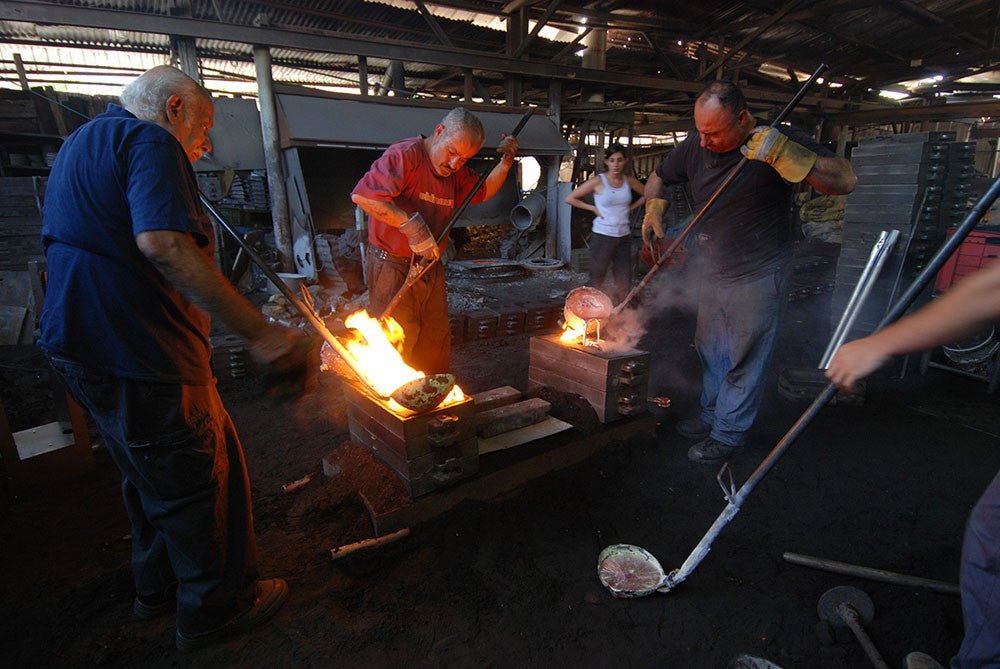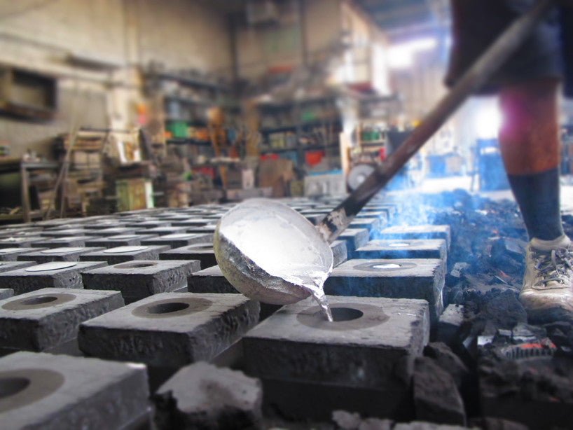 Materials: Molten aluminium on locally sourced charred Cypress wood
