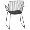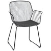 The Alto Rebello is a powder coated black chair featuring a bent steel frame in a stunning geometric pattern. This thoughtfully crafted chair features a comfortable Oatmeal upholstered fabric seat and armrests.