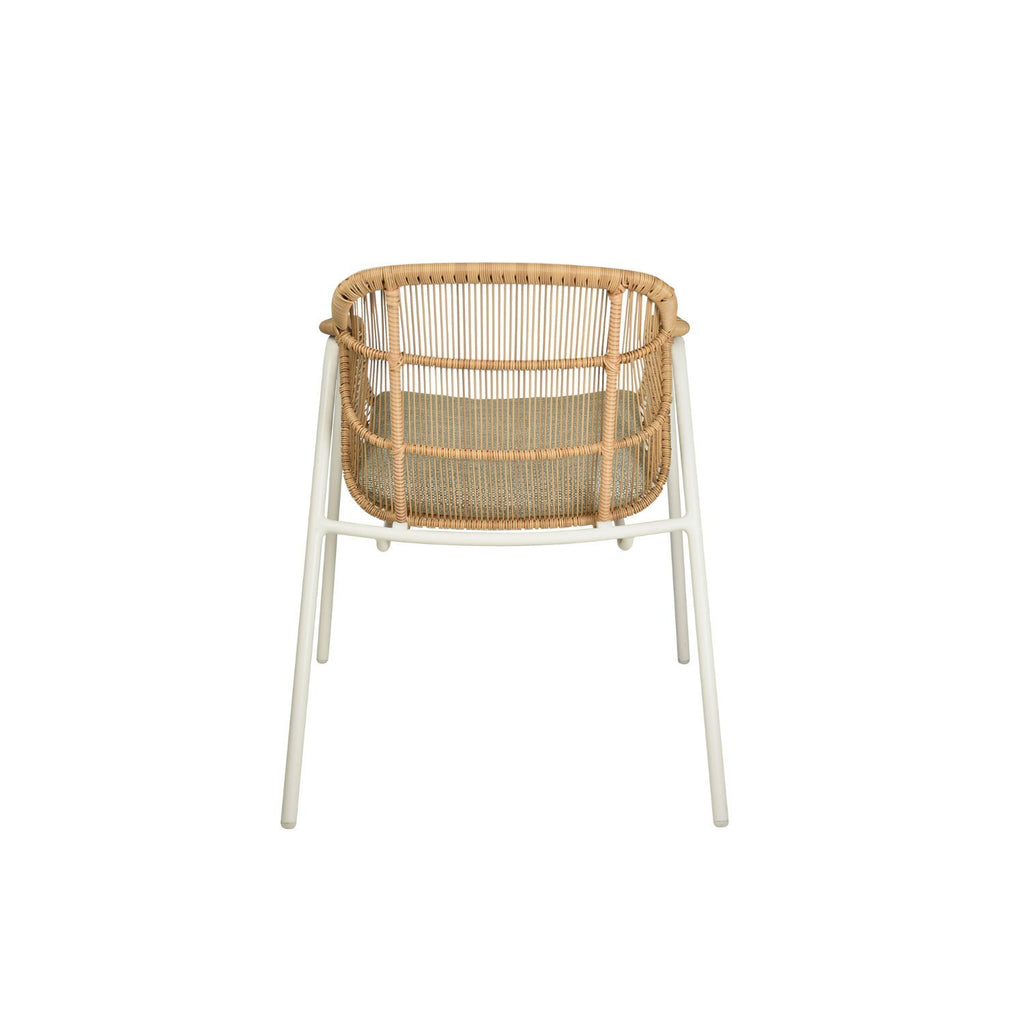 Its cushioned seat adds extra comfort, making it a stylish fit for any outdoor space.