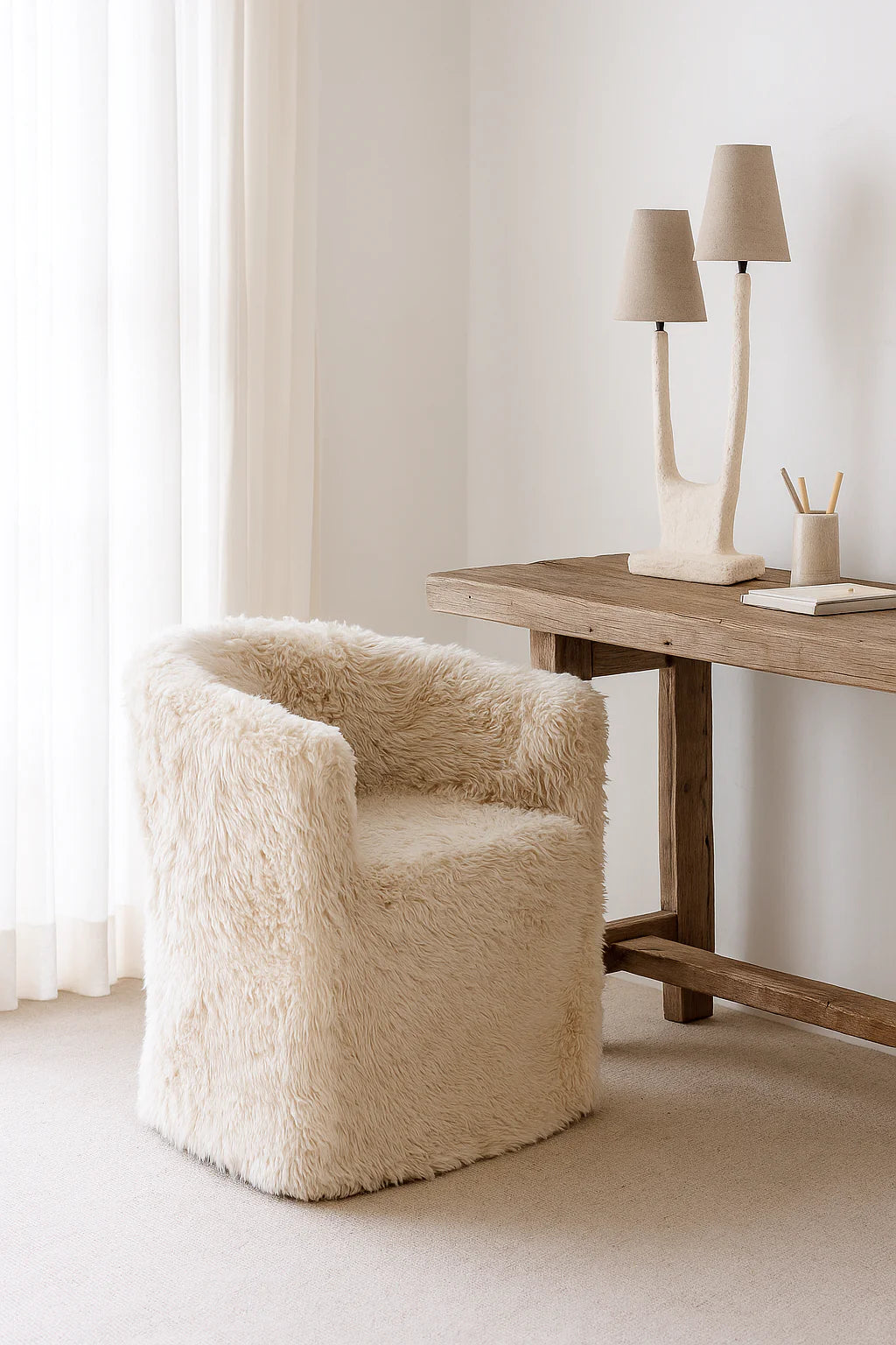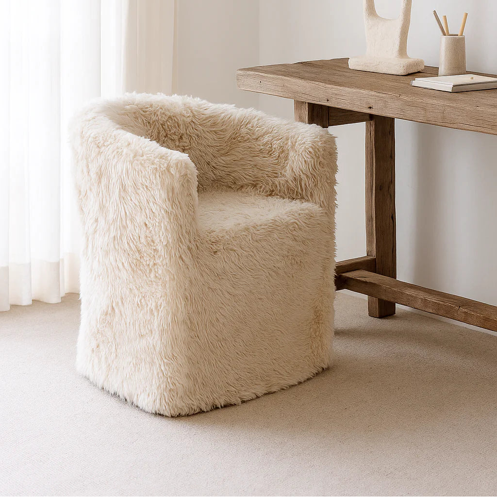 Each chair includes a removable slipcover, available in a selection of premium fabrics and leather finishes to suit a variety of interior styles. Its clean lines and skirted base create an elegant, understated aesthetic that transitions effortlessly between contemporary and classic spaces.