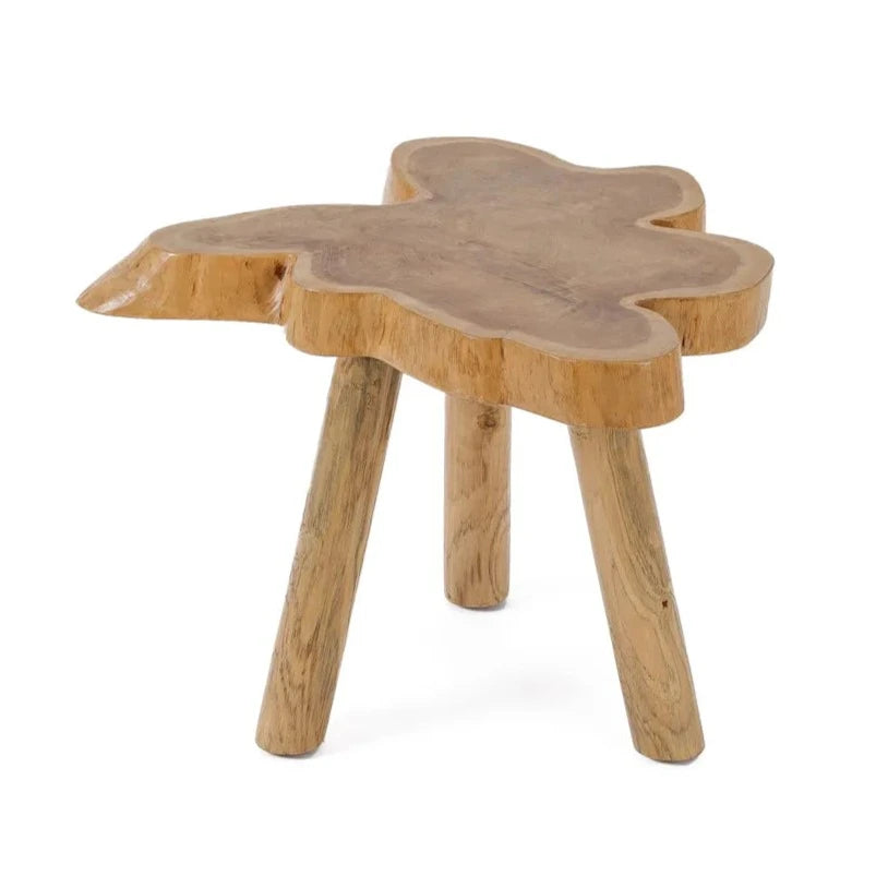 This lovely small side table on 3 legs has a beautiful organic shape which makes it a very decorative piece that fits any room at home. Can also be placed on a covered terrace to enjoy a drink, read a book or magazine and just relax. Also attractive to use as a cute bedside table.