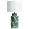 The Pineapple Lamp features a gorgeous white porcelain pineapple design on an emerald green base, finished with a white shade