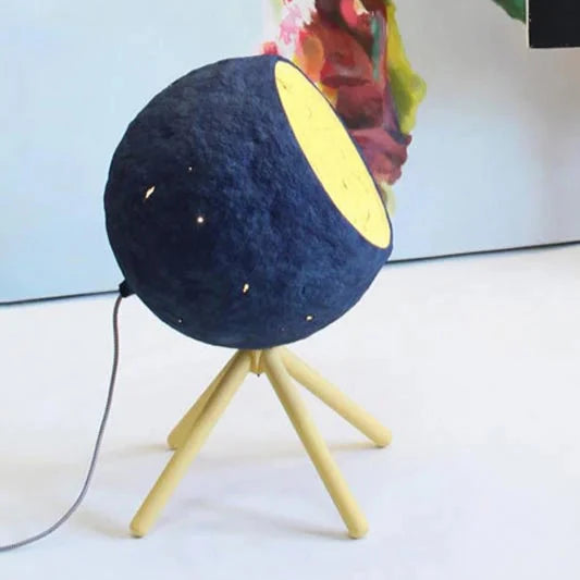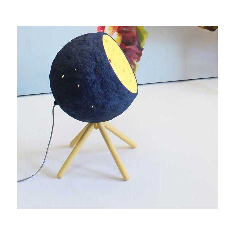 Pluto lamp is handcrafted entirely from pulped newspapers, ecologic, water based glue and wood. In conclusion all these components, as well as the process of lamp formation, are environmentally friendly and ecological.