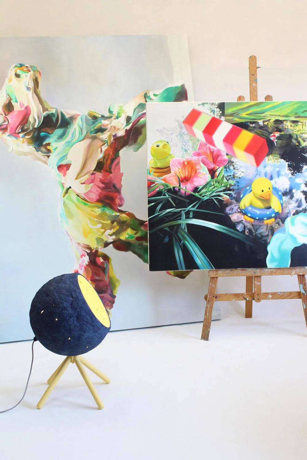 As Pluto moves away from the Sun, its atmosphere gradually freezes out, and falls to the ground. That’s why I created a floor lamp, with a thick, solid layer of paper, much heavier than in the first, pendant one. This version of floor paper pulp lamp refers also with its form to the Disney cartoon character called Pluto the Pup – the dog of Mickey Mouse.