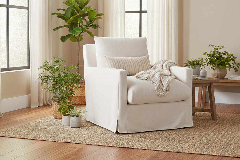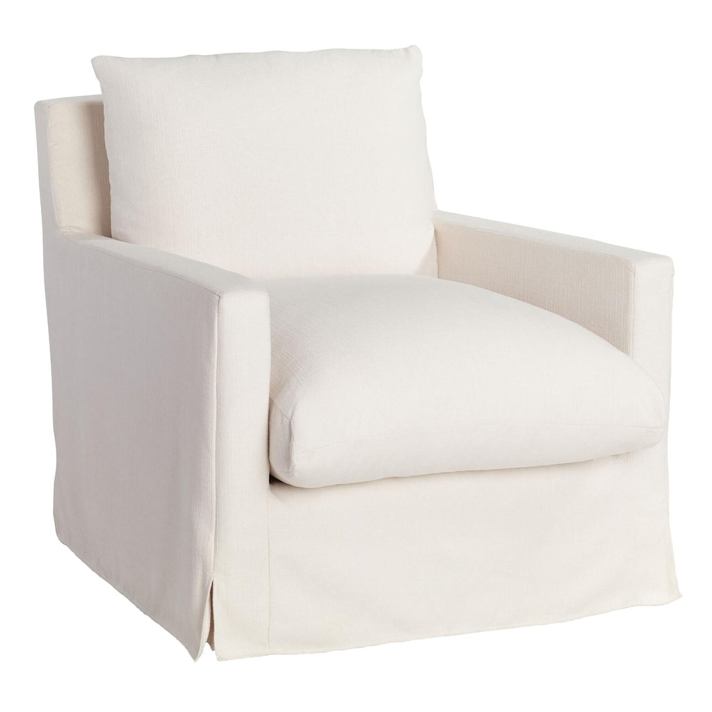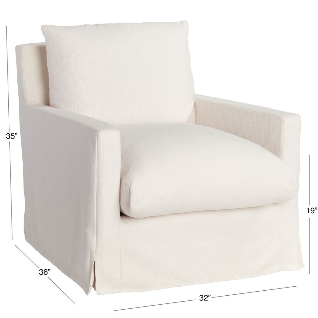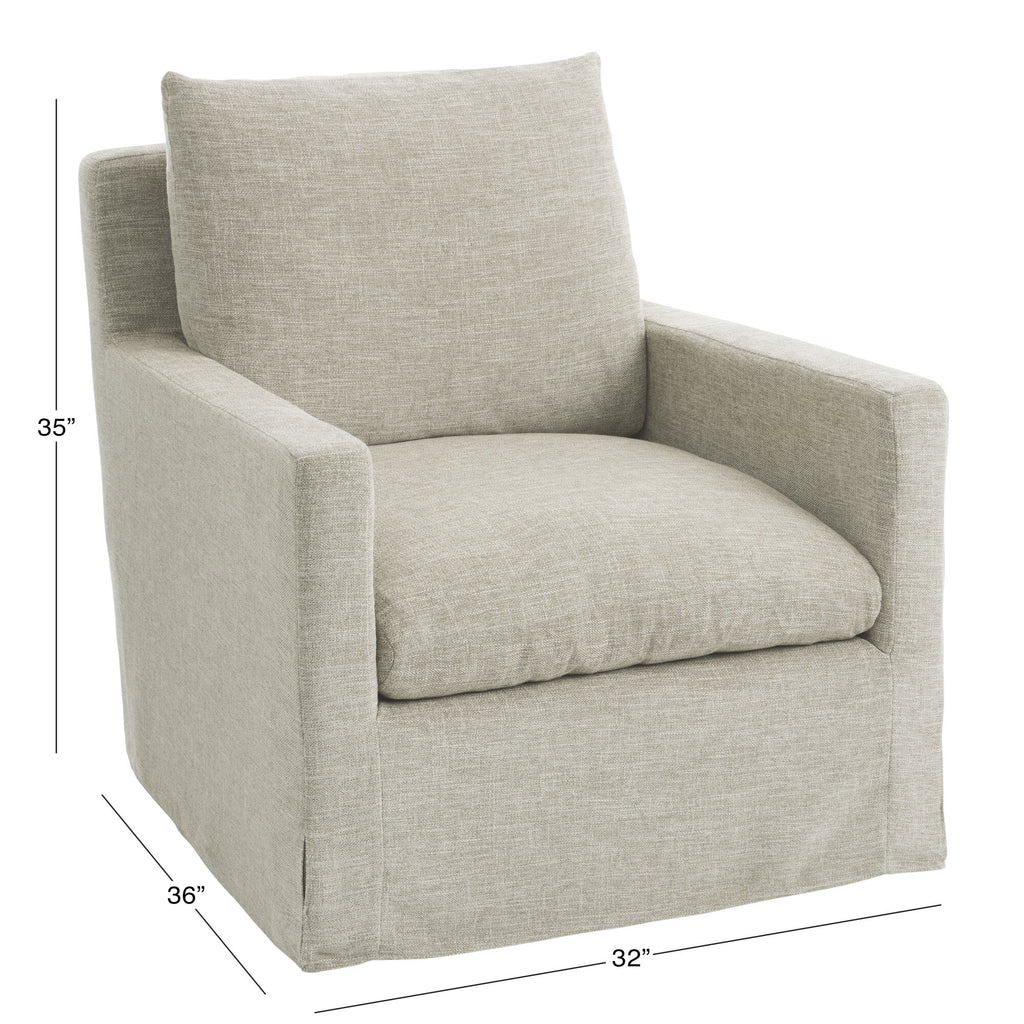 With its slipcover look, feather-filled reversible cushions and swiveling motion, this down lounge chair provides plush comfort and refined style for years of movie marathons, game nights and cozy evenings. Available in your choice of colors, you can pair it with its matching ottoman for even greater comfort.