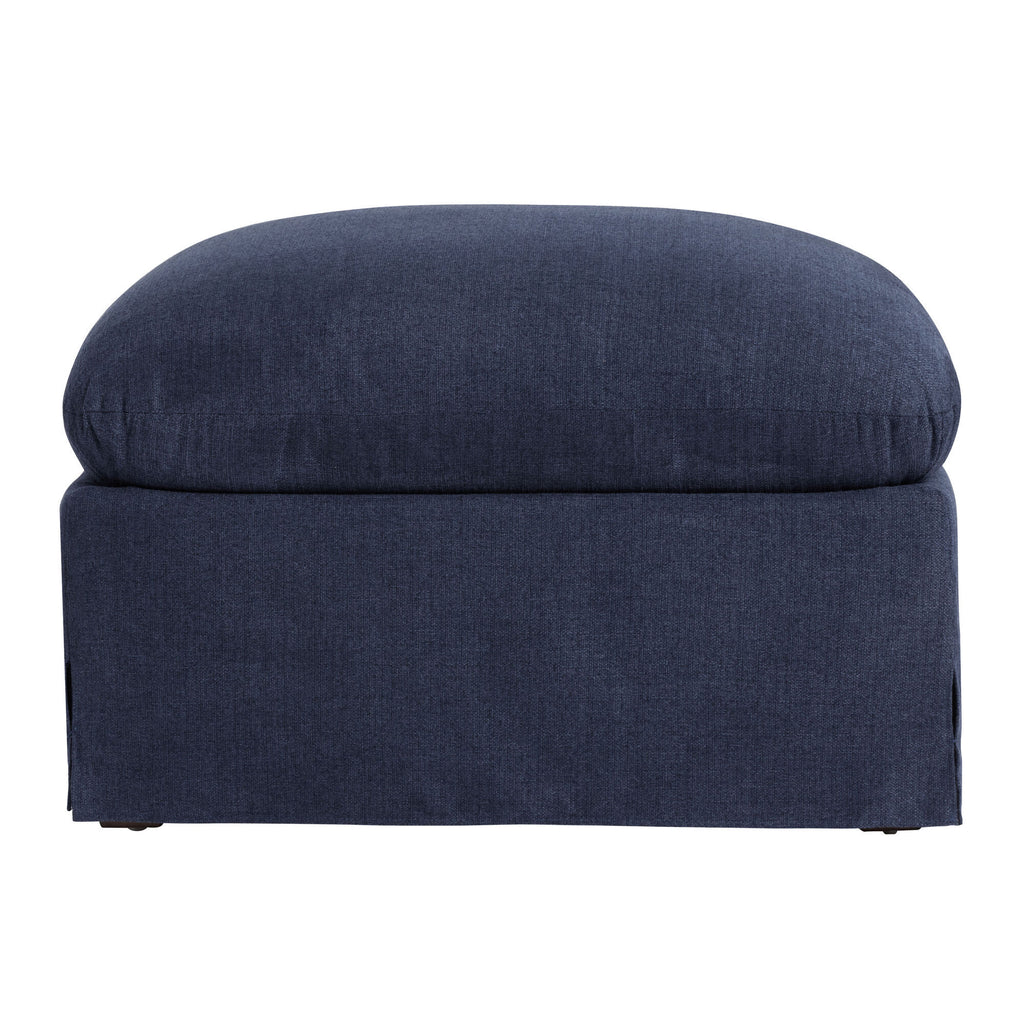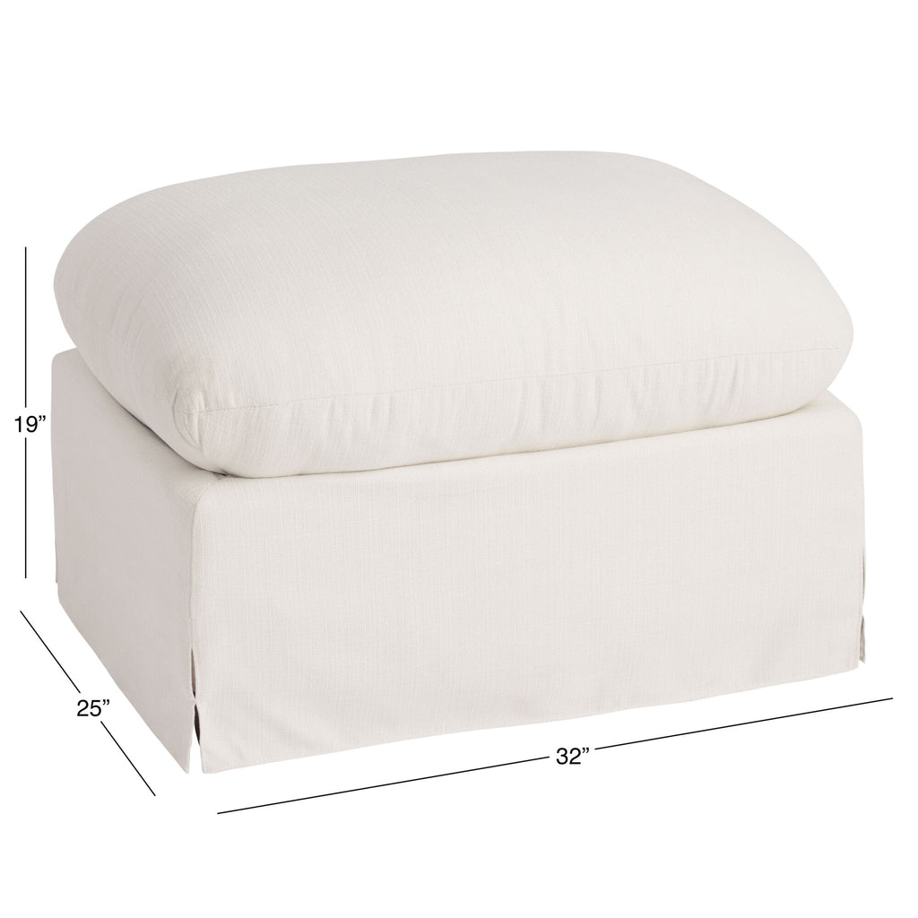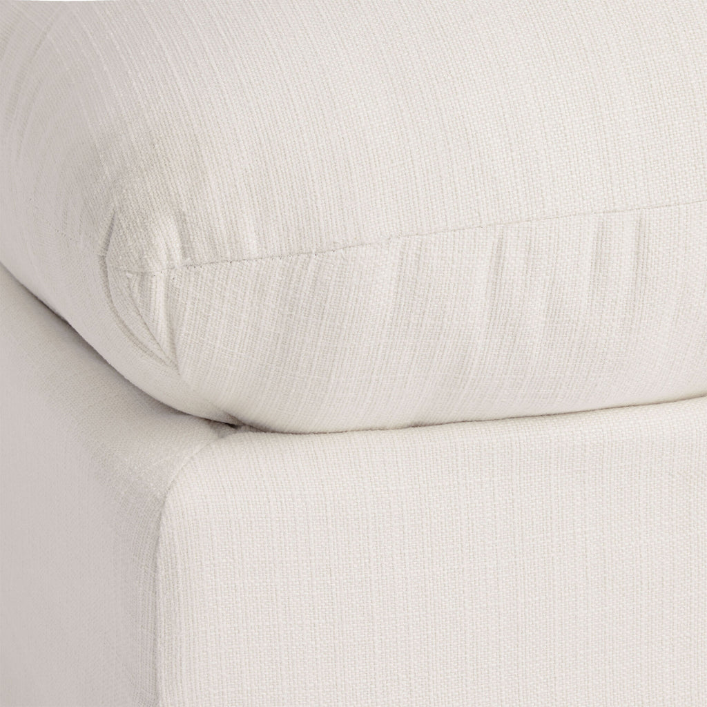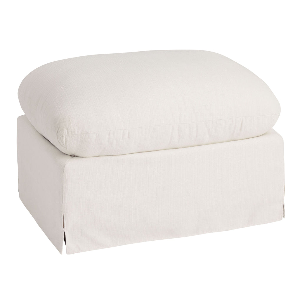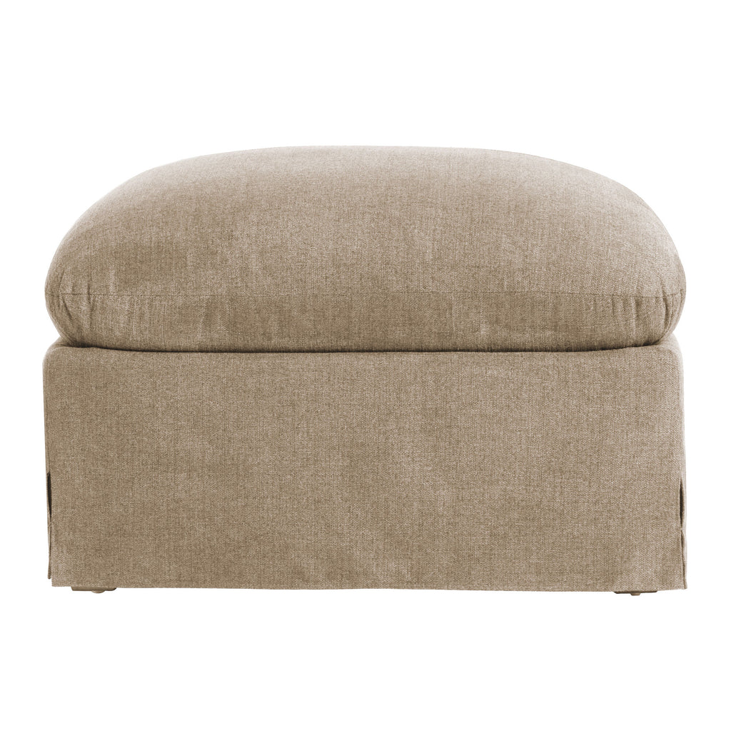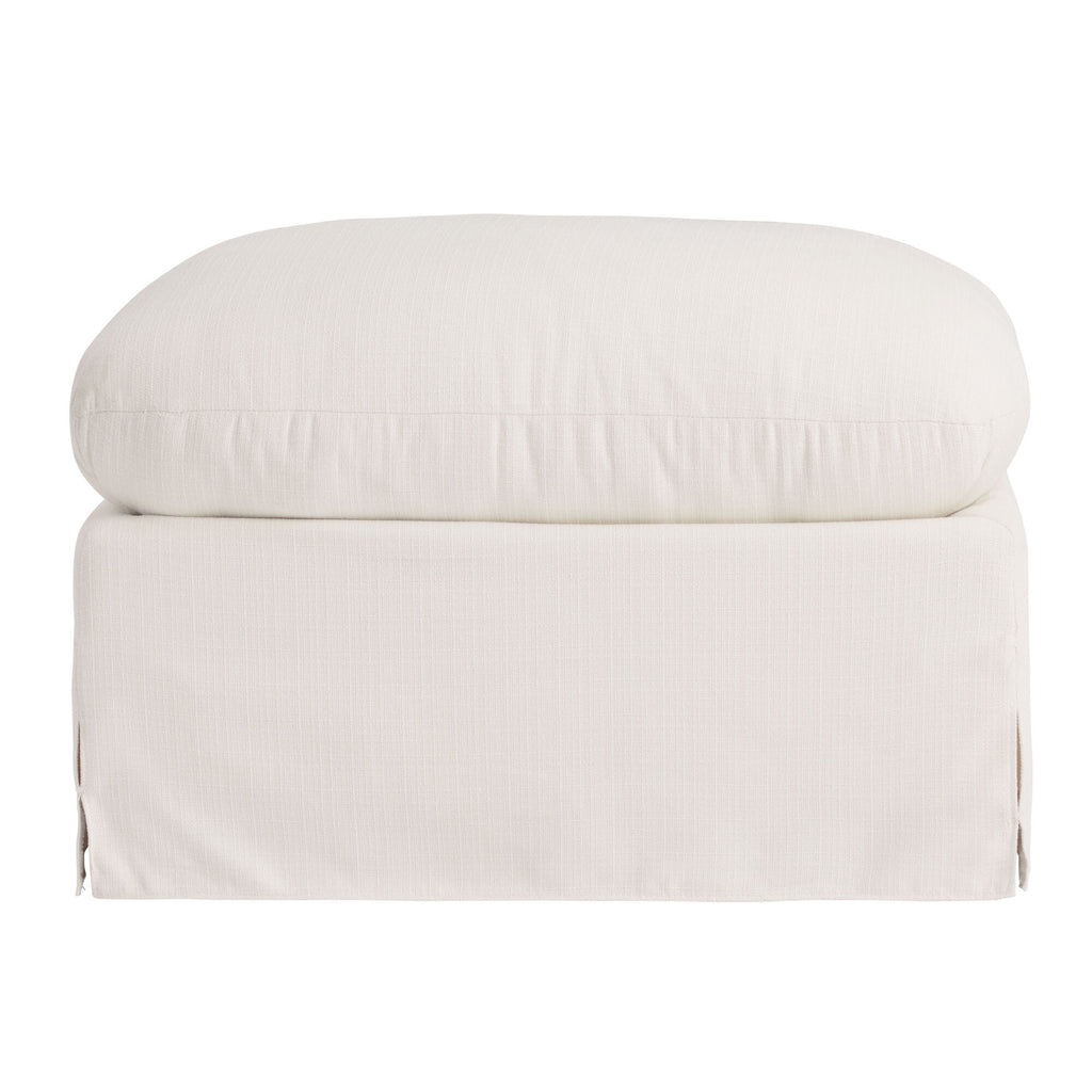 A custom-made footstool to pair with our iconic Brice swivel chair, it's available in the same color of upholstery to ensure a perfect match. With its large rectangular profile and feather-filled fixed cushion, this down ottoman also works as a plush standalone seat in any setting.