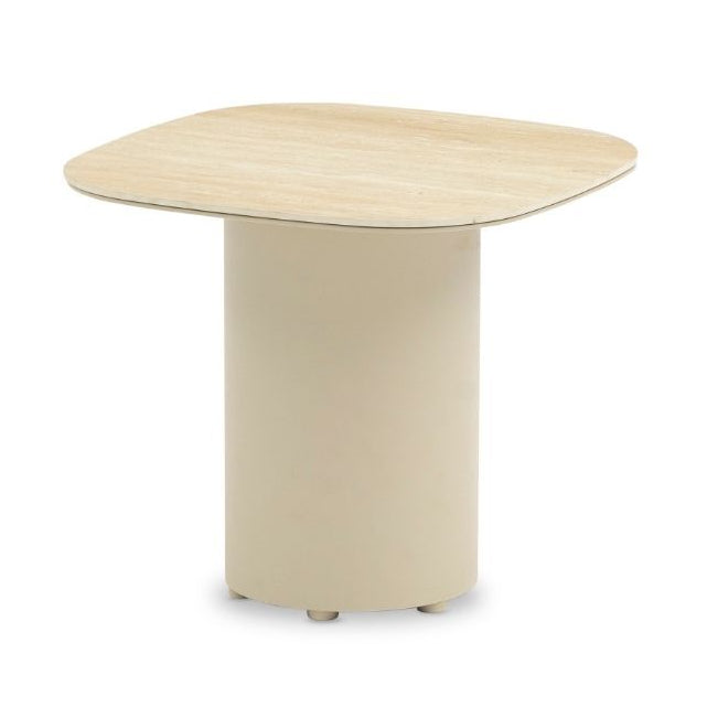 A thick aluminum base provides a solid foundation, while the beautiful sand ceramic top adds a natural touch. The neutral colors and gentle curves create a minimal, calm silhouette. Made for durability and style, these tables are perfect for enjoying coffee or conversation in the open air.