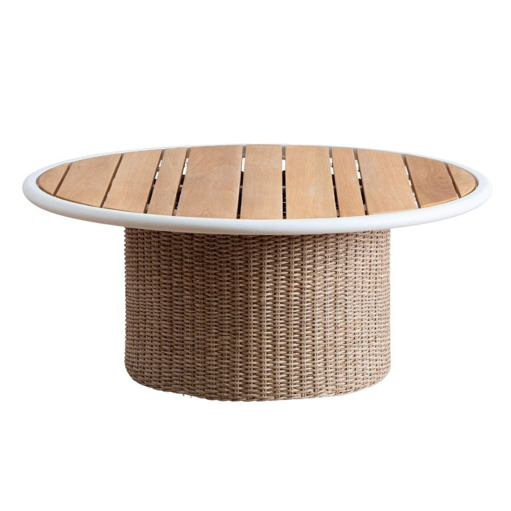 The Ibiza Rope Side Table is designed to bring texture and character outdoors. A woven round ecolene base sets the tone with depth and intrigue, while a circular teak top framed in white aluminium offers a clean, modern contrast. Treated with Teakshield, the surface is made to age gracefully, developing a natural patina that enhances its beauty over time. A piece that adds warmth and personality to any outdoor setting, Ibiza is where form and function meet with ease.