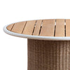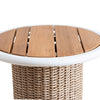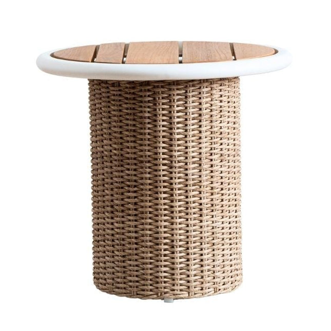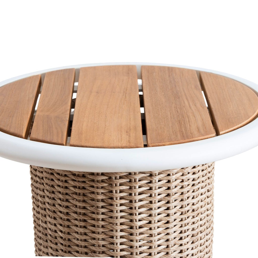 The Ibiza Rope Side Table is designed to bring texture and character outdoors. A woven round ecolene base sets the tone with depth and intrigue, while a circular teak top framed in white aluminium offers a clean, modern contrast. Treated with Teakshield, the surface is made to age gracefully, developing a natural patina that enhances its beauty over time. A piece that adds warmth and personality to any outdoor setting, Ibiza is where form and function meet with ease.
