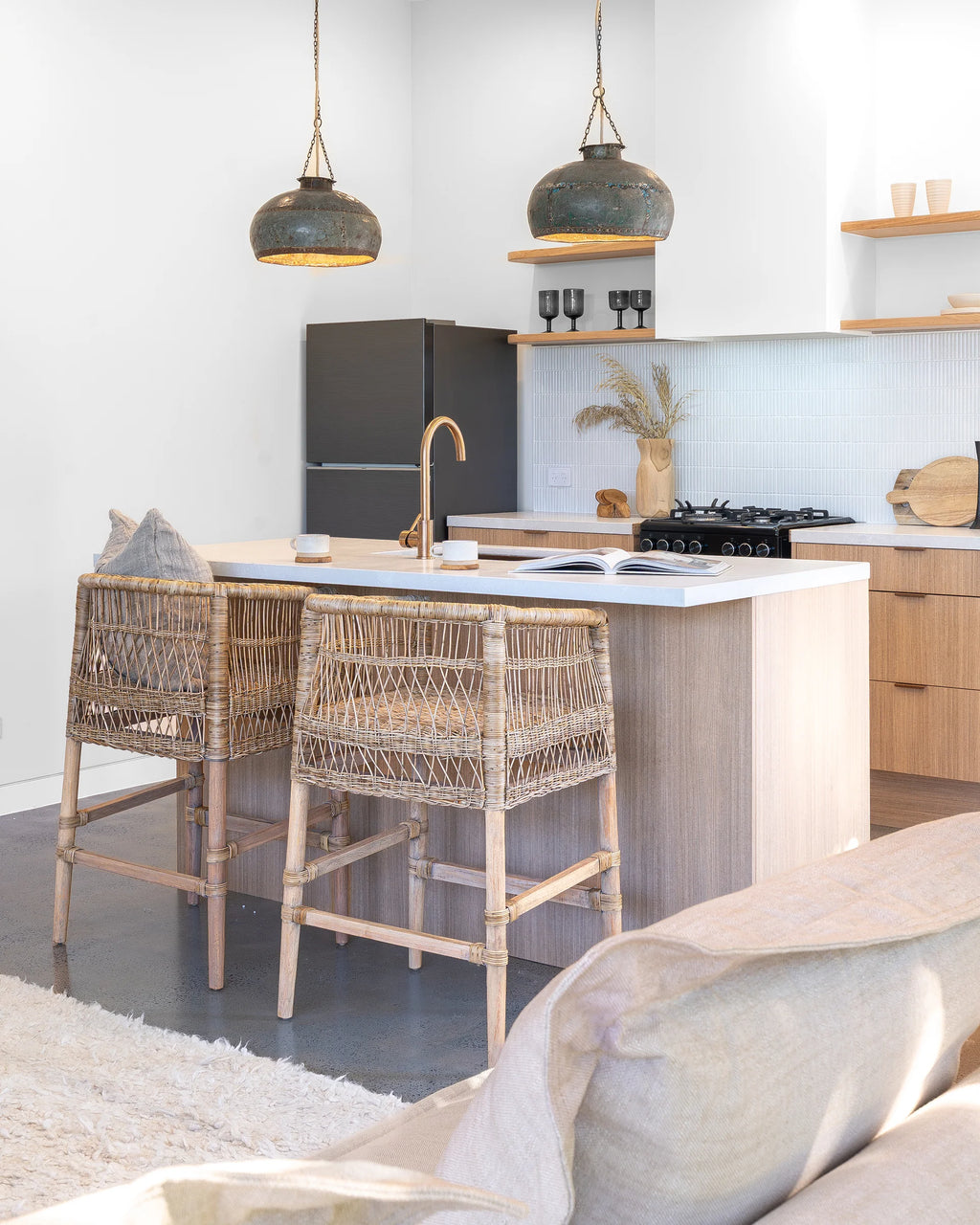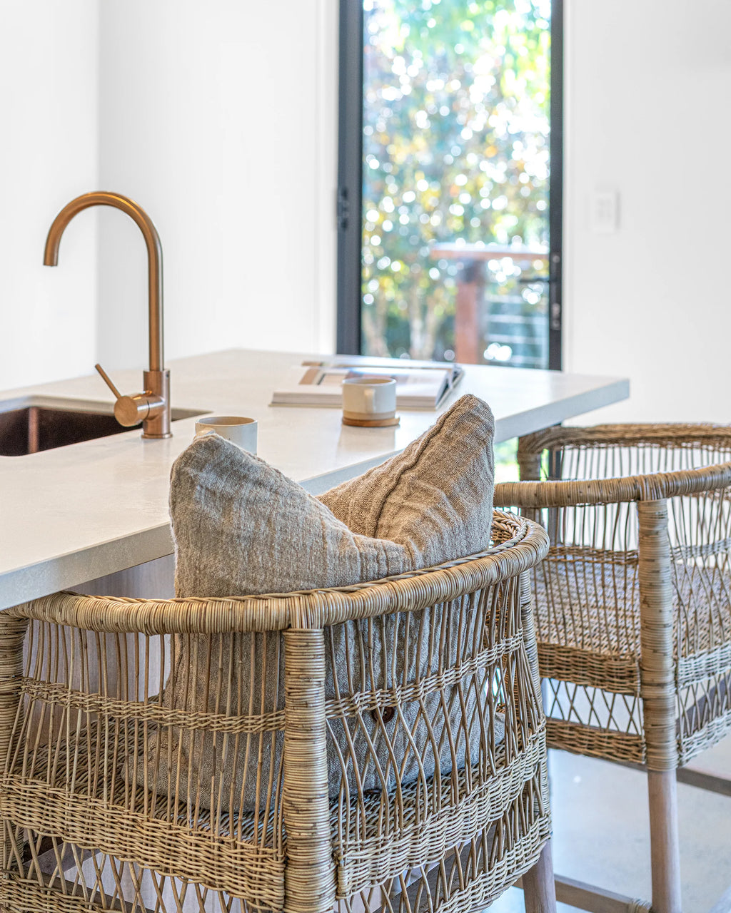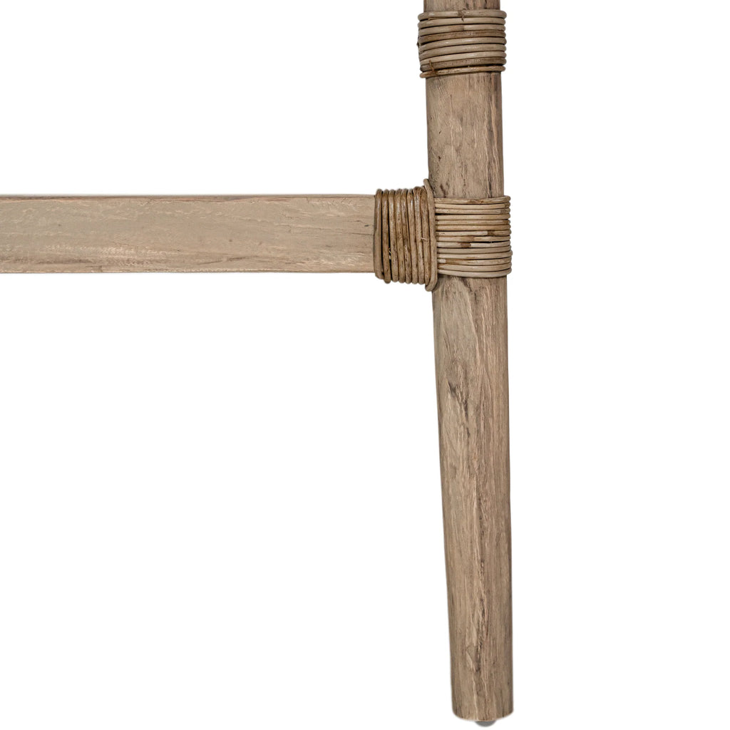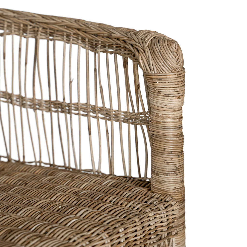 Handwoven from rattan with a durable natural wood frame, this bar chair showcases a striking design that adds texture and warmth to any space. Its high back and comfortable seat provide support while maintaining an airy, open look. Perfect for both indoor and covered outdoor areas, the Malawi Bar Chair brings an organic, relaxed vibe to your home.