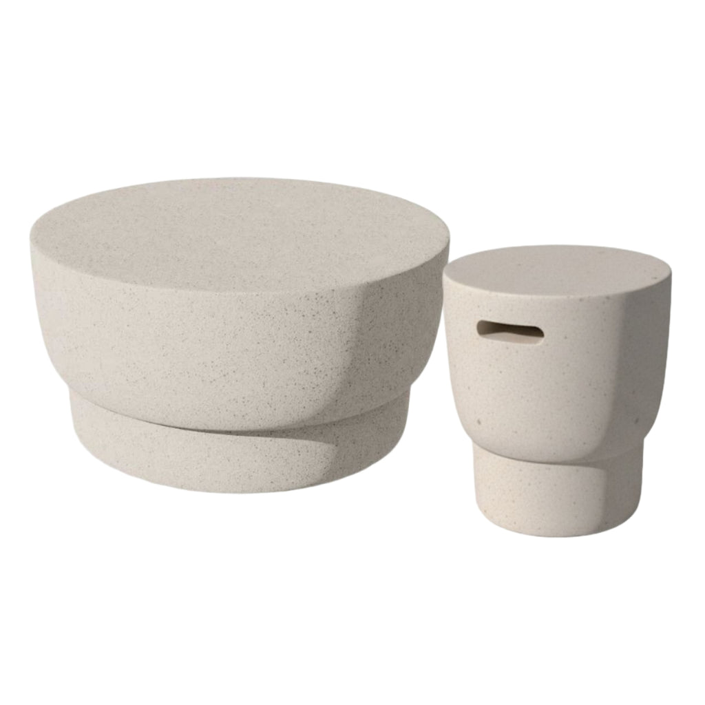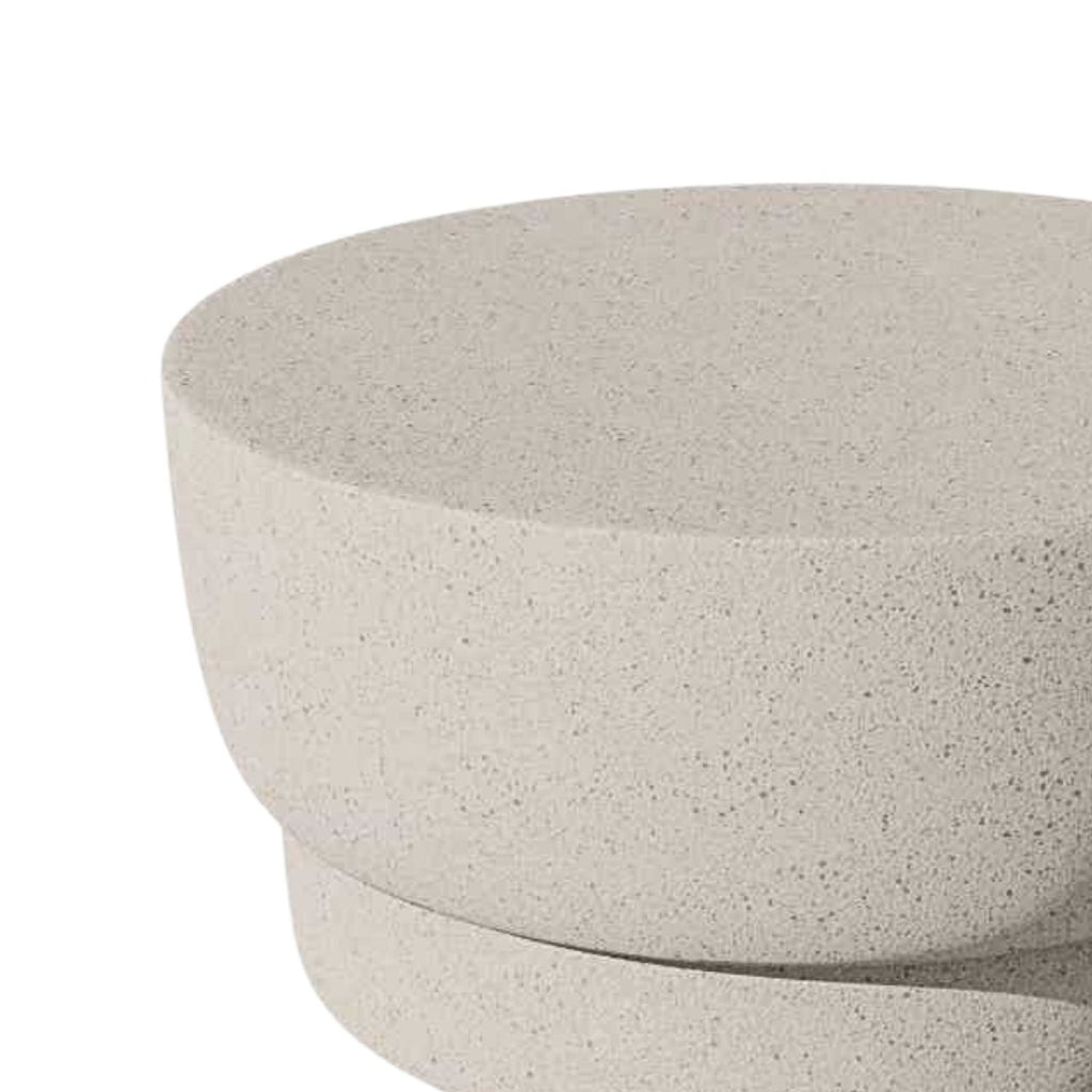 Sculptural yet understated, the Mila Coffee Table is crafted from fibreglass powderstone with a smooth, round silhouette that complements open-air living.