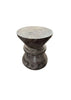Durable, functional, and visually striking, this side table seamlessly blends artistry with utility—perfect as an accent piece in both modern and rustic interiors. To achieve its brown and off-white finish the wood was burned numerous times, painted and then sanded down.