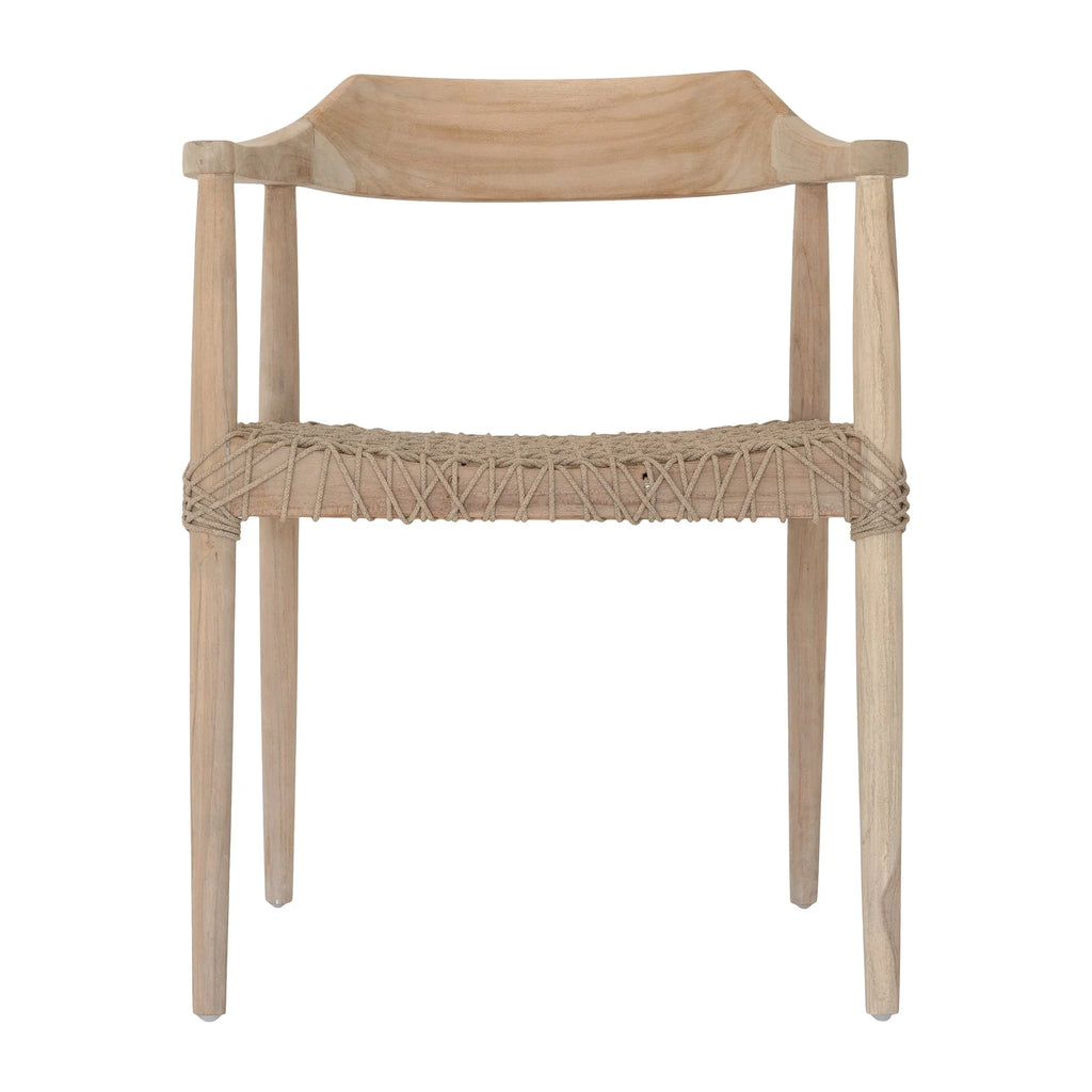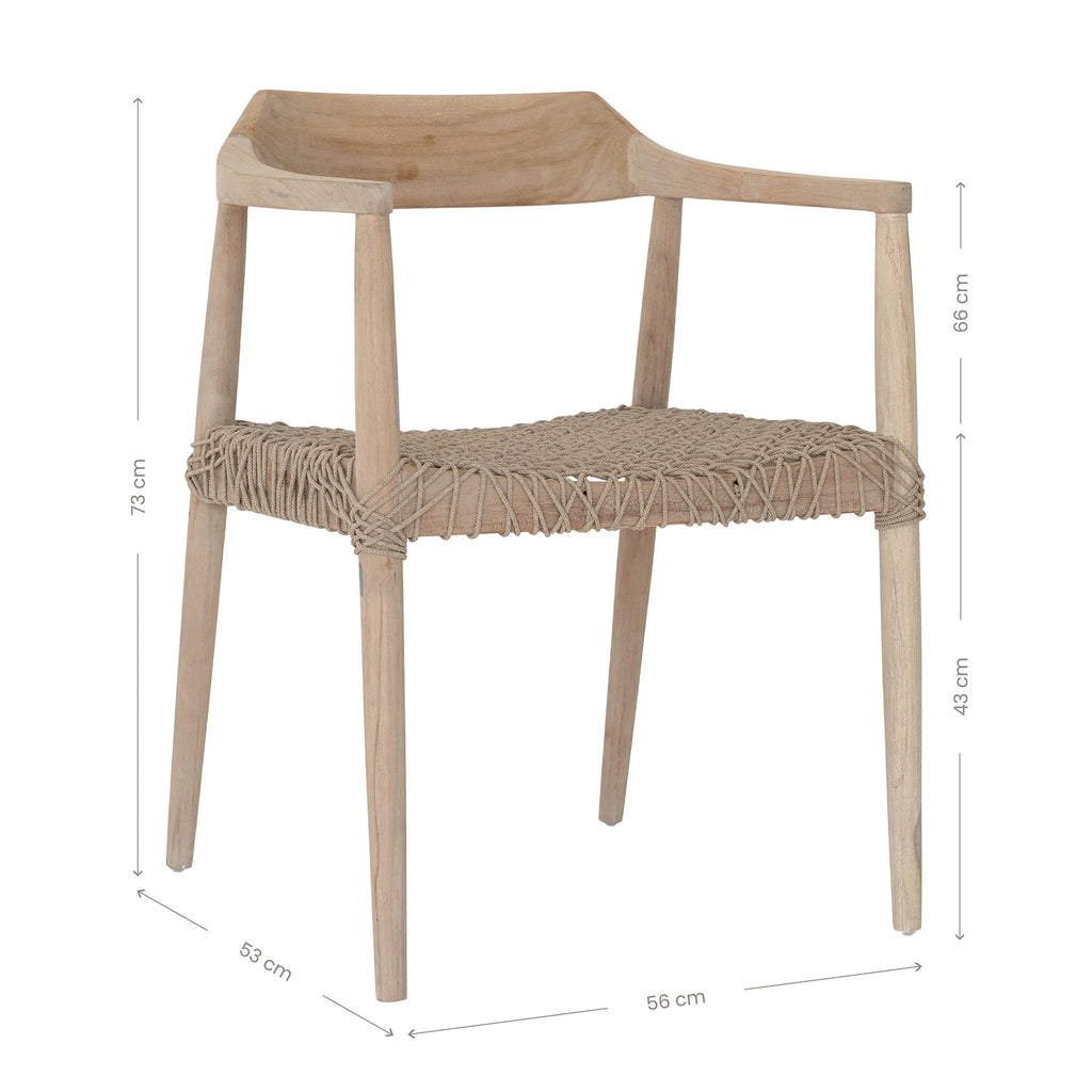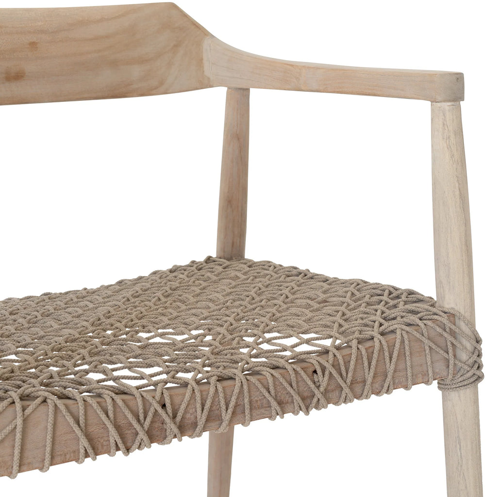 The Rhimpee rope range is a striking combination of a Scandi-style teak frame in a reclaimed aged finish, with a contemporary silhouette of a hand-woven rope seat in a natural hue.
