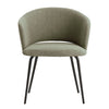 An upholstered seat that gently wraps around the sides offers a cocooning feel while slender metal legs give it a light, modern presence. Designed with versatility in mind, it moves easily from the dining table to the home office, making it a seamless choice for both work and leisure.
