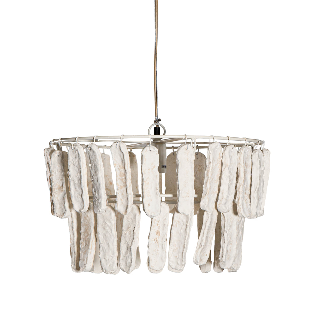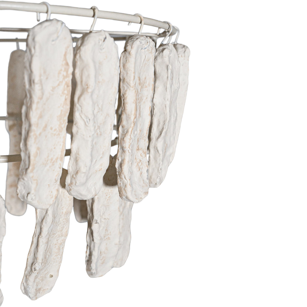 It includes a rope-like electrical fitting, adding a touch of organic elegance to any room.