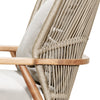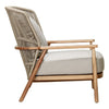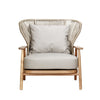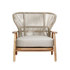 The Cowie Lounge Chair features a durable teak and stone rope frame, with luxurious Spectrum Dove upholstery
