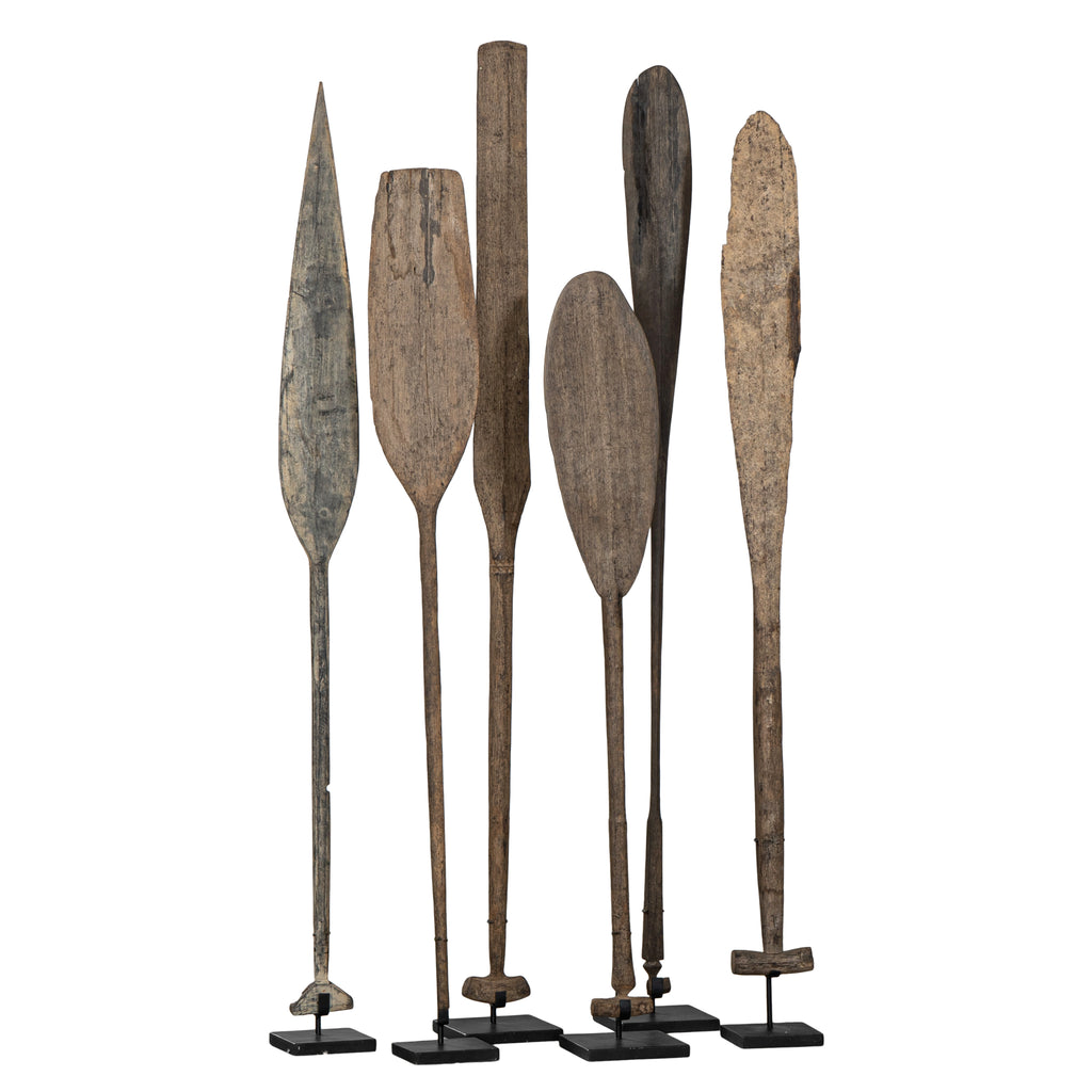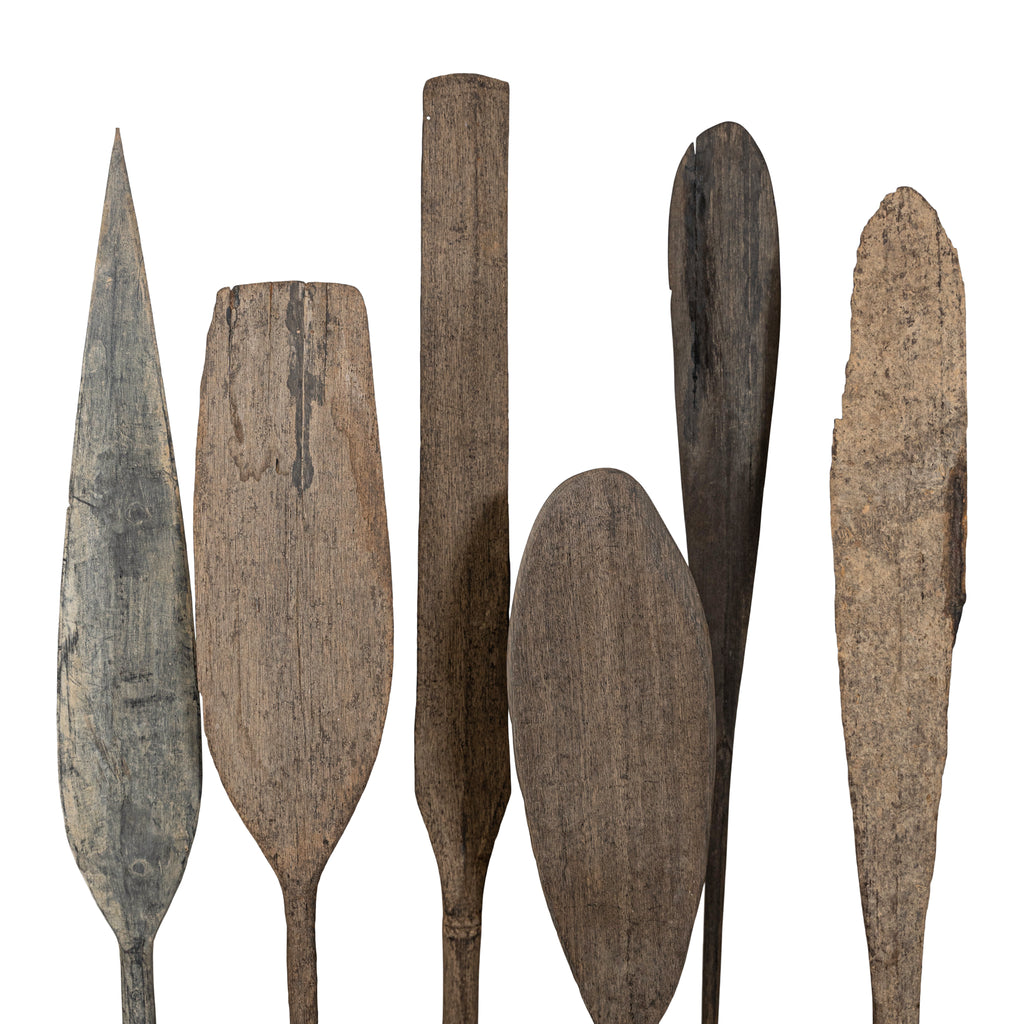 These original canoe paddles are steeped in history! Each one showcasing a unique shape and texture that tells its own story.