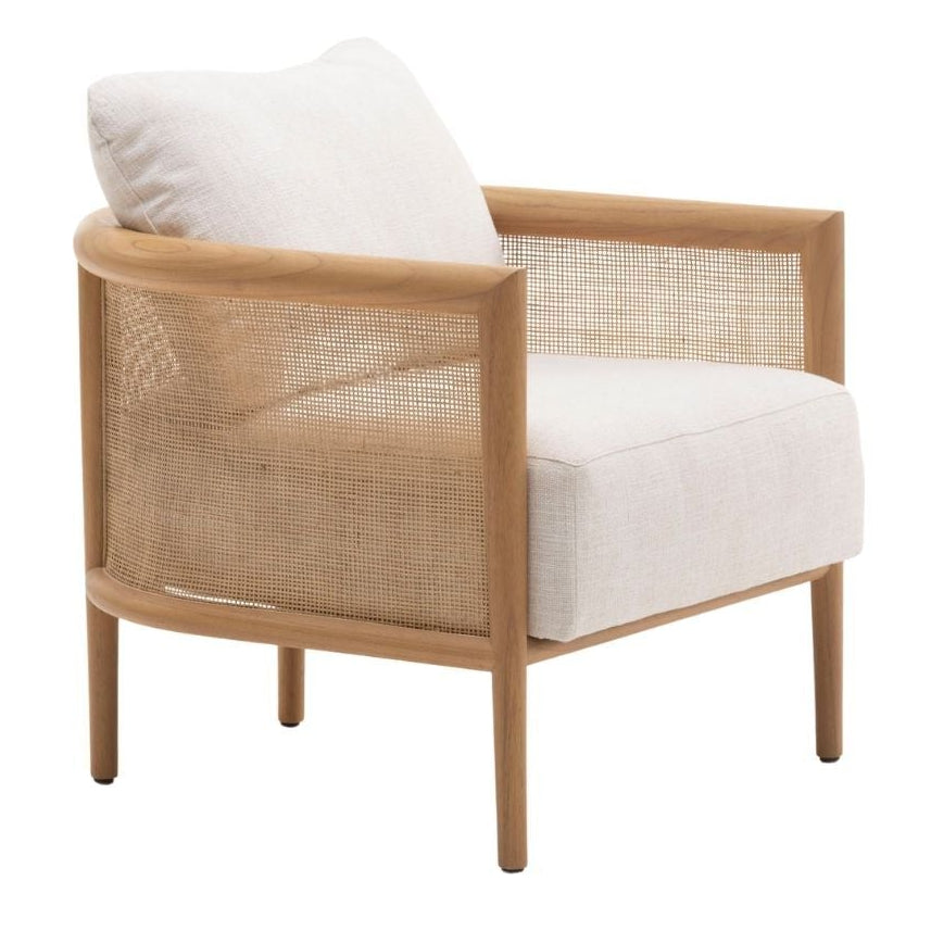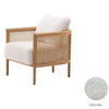 Caden leans into natural form featuring thick timber arches paired with a woven rattan screen that invite light and shadow to dance across its surface.