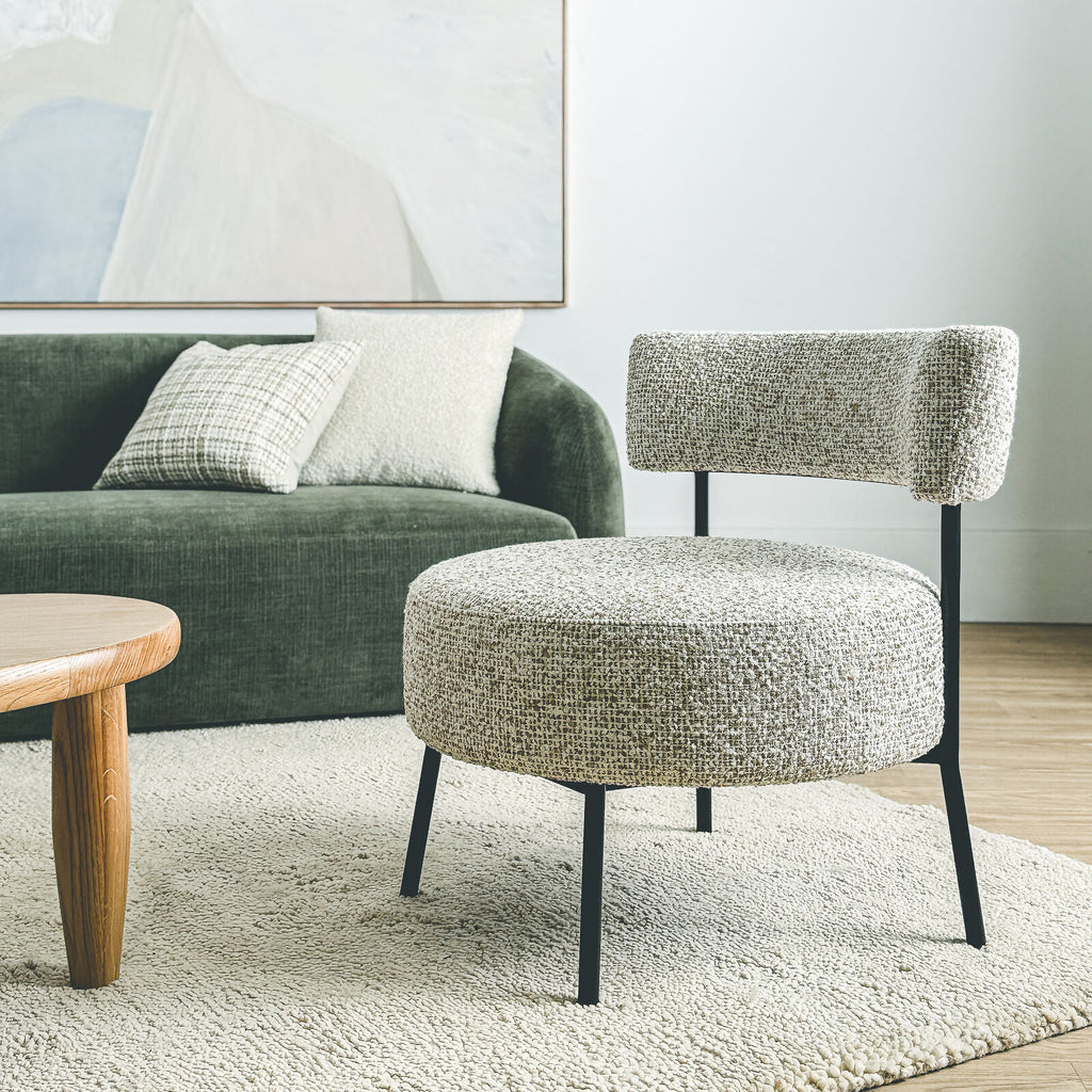 Its sleek black metal legs provide a sturdy foundation while adding a modern edge to the chair's elegant silhouette. Perfect for relaxed moments, the Remi is designed to complement your sophisticated lifestyle and enhance your sanctuary of calm.