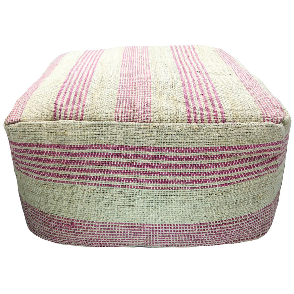 The Remy Ottoman comes handwoven in a wool & jute mix and is finished in watermelon pink and natural plait in a bold stripe pattern