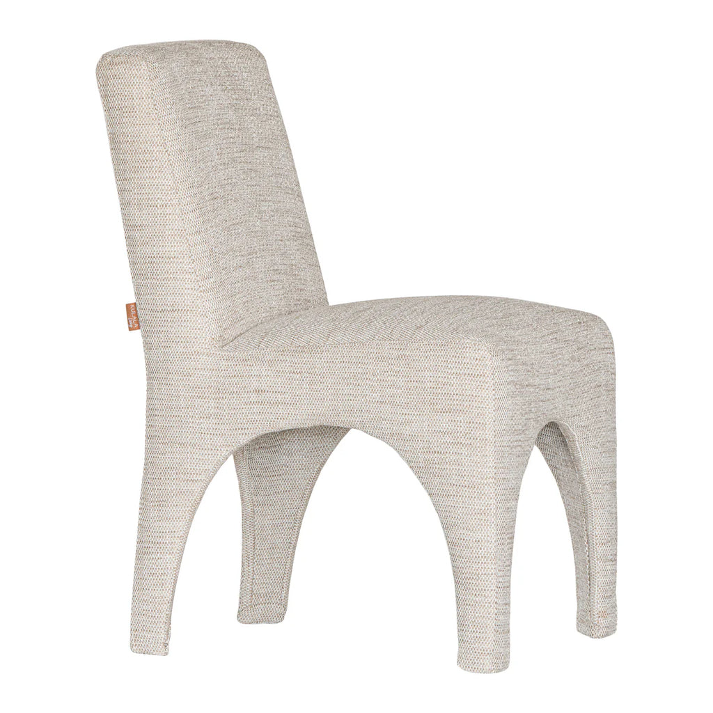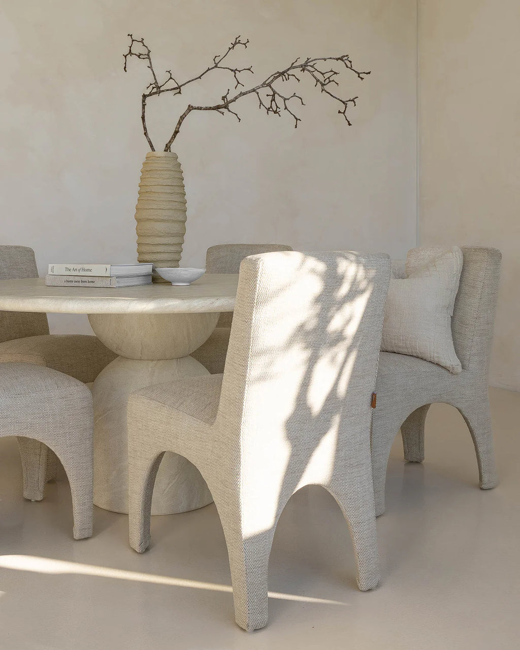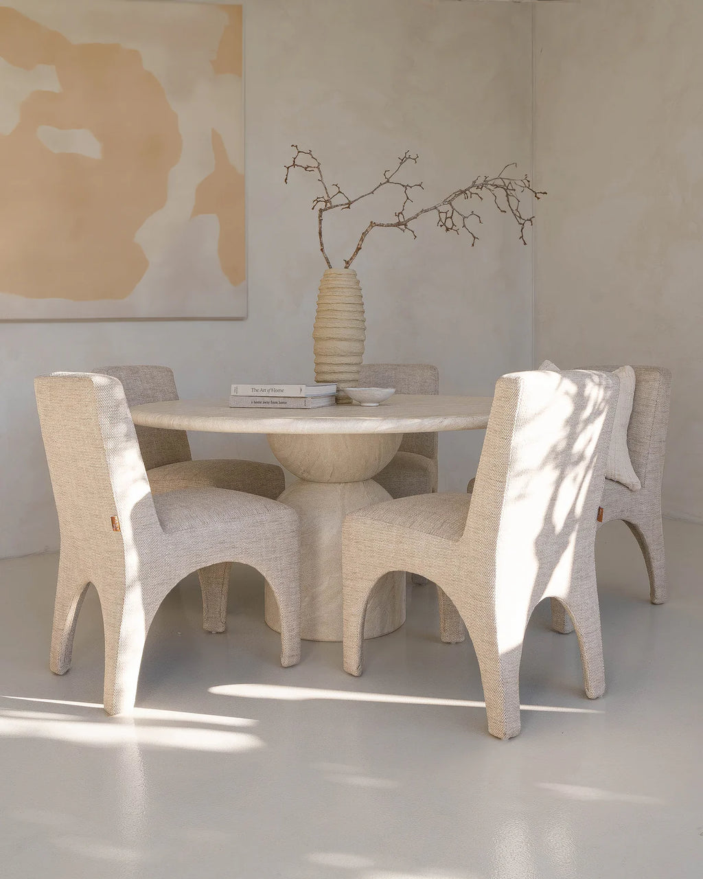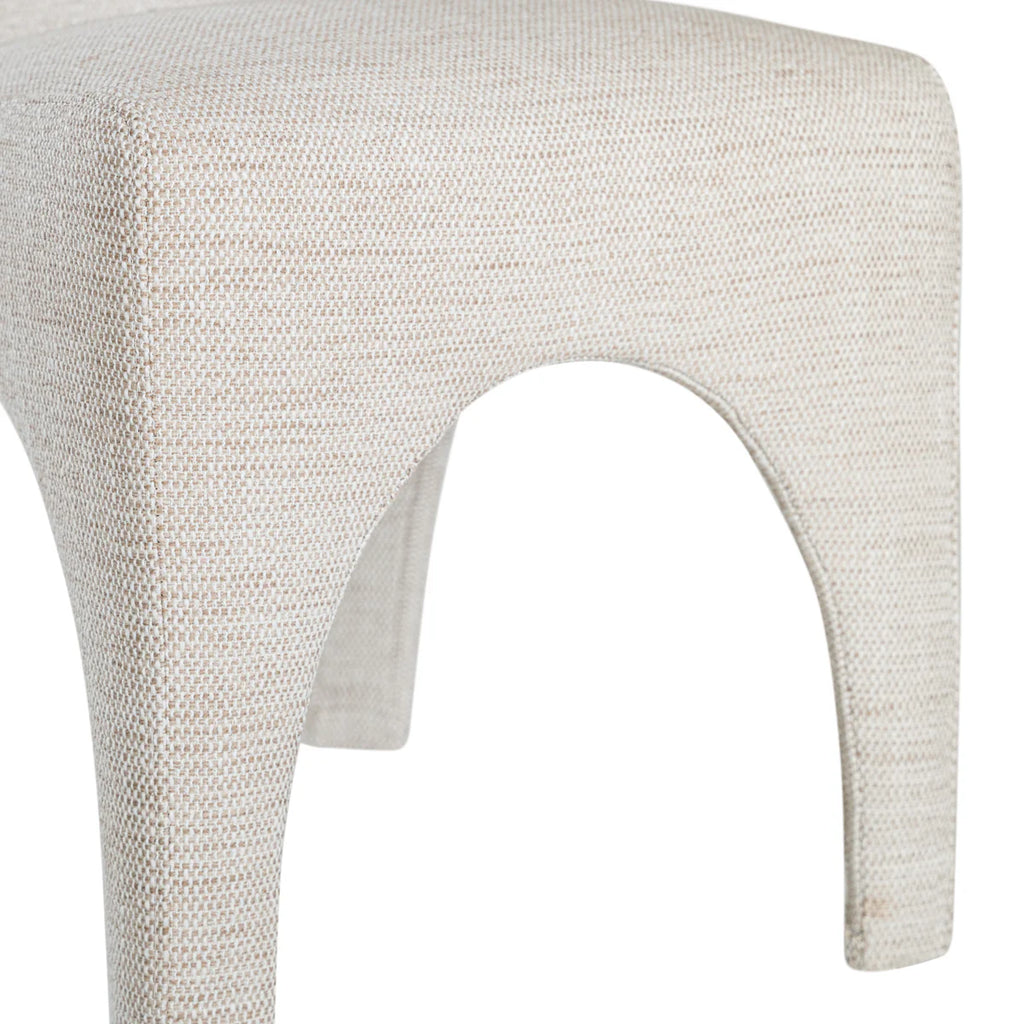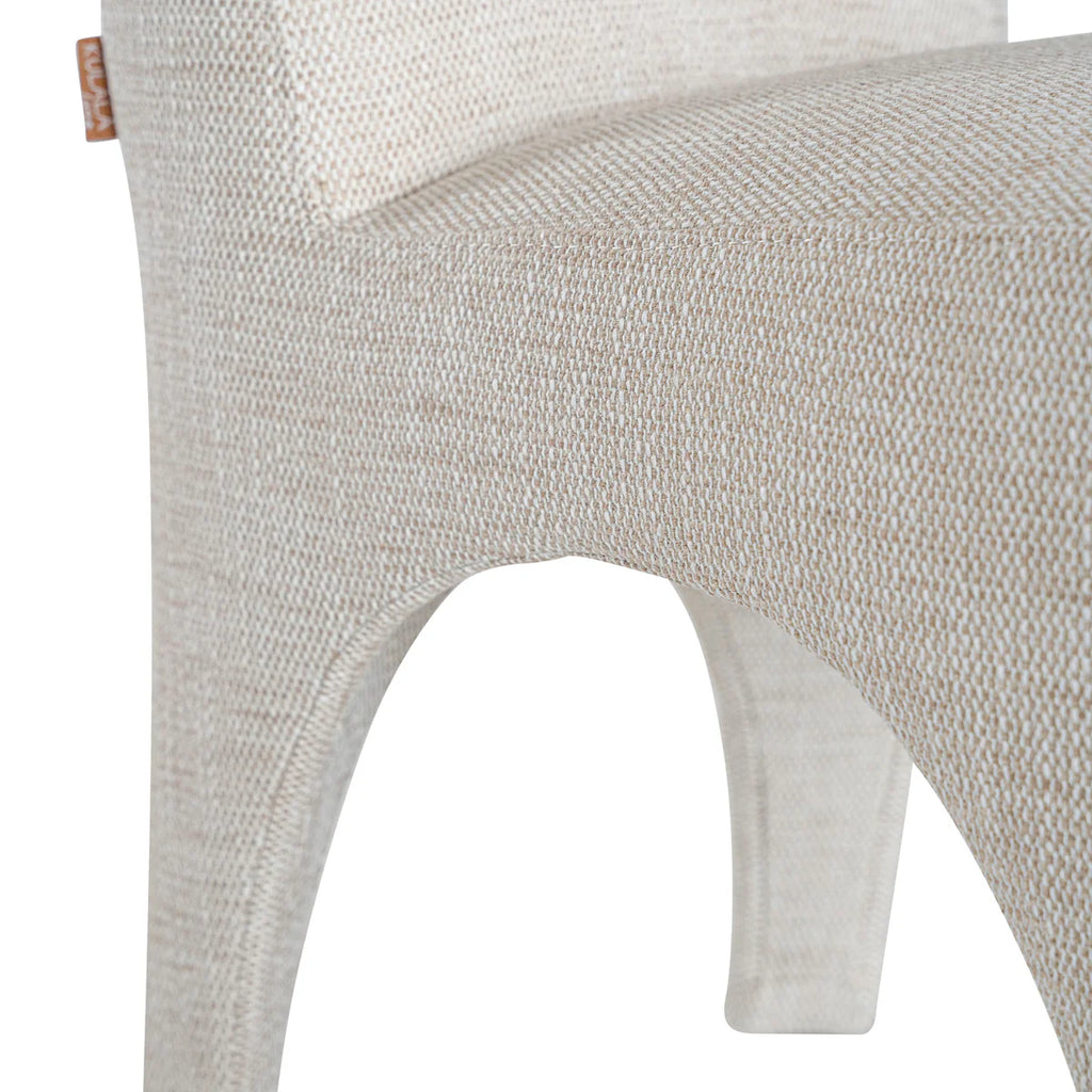 Upholstered in a natural fabric with matching stitching, its soft curves add an artistic flair while ensuring comfort.