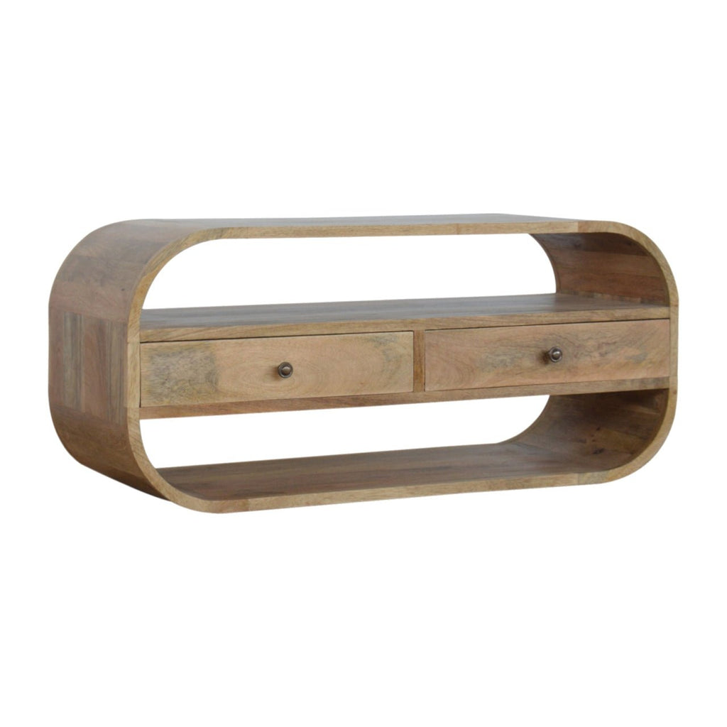 This solid wood TV Media Unit has been constructed from 100% solid mango wood in a natural finish and offers a nice rounded look on the edges.