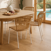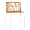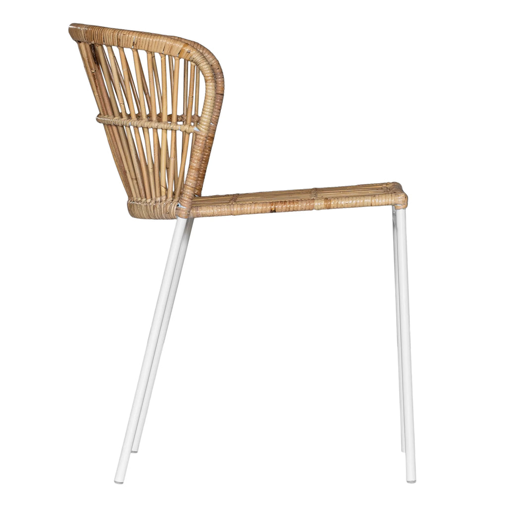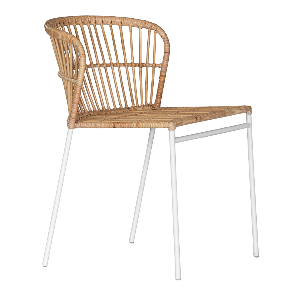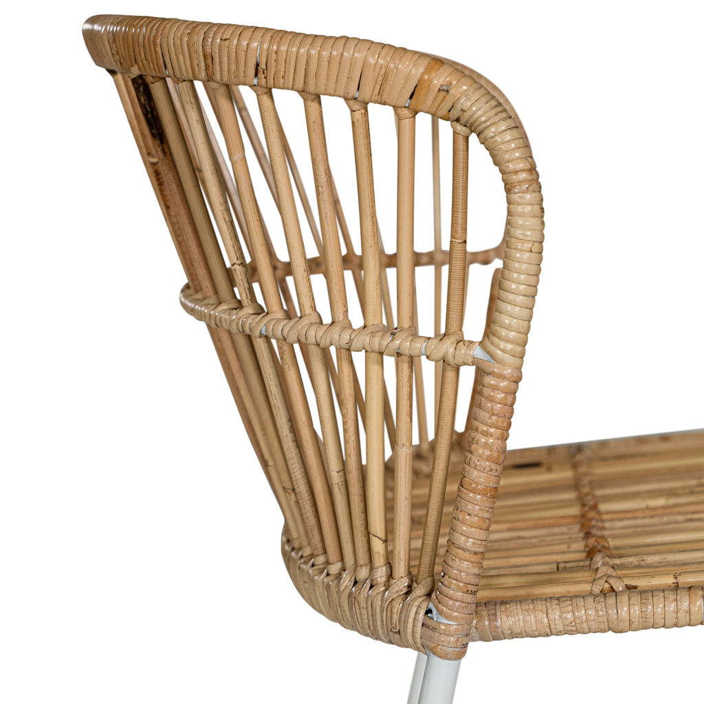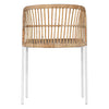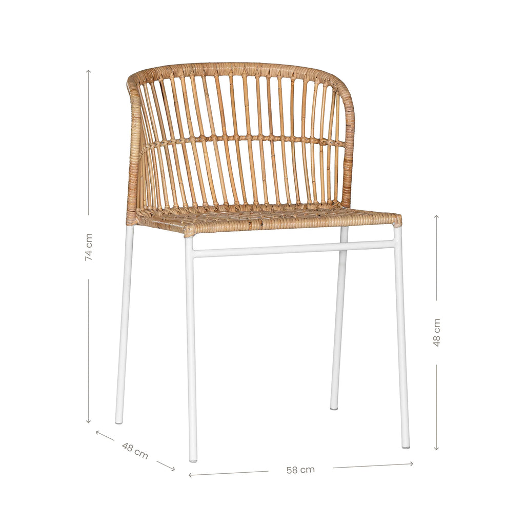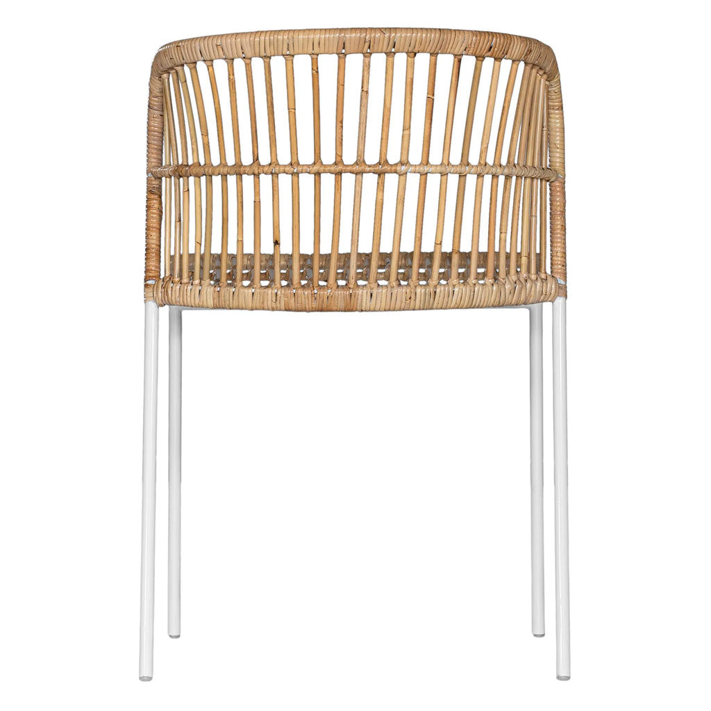 Its handwoven rattan back and seat offer both style and comfort, while the sturdy white metal frame provides durability and a minimalist aesthetic. Perfect for indoor and fully covered outdoor dining areas, the Meru Dining Chair brings a relaxed yet sophisticated touch to any space. Its lightweight design also makes it easy to move and rearrange, offering versatility in your home.