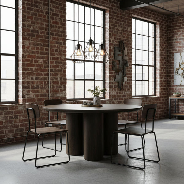 NAVARRA ROUND DINING TABLE | 4 PILLAR LEGS | DARK FOREST BROWN