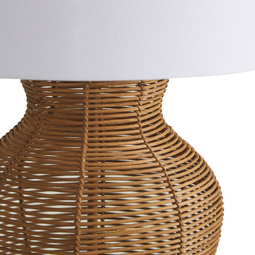This lamp features a beautifully handwoven rattan base, showcasing organic curves and natural tones that effortlessly blend with any décor.