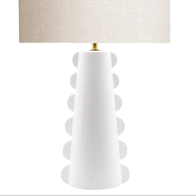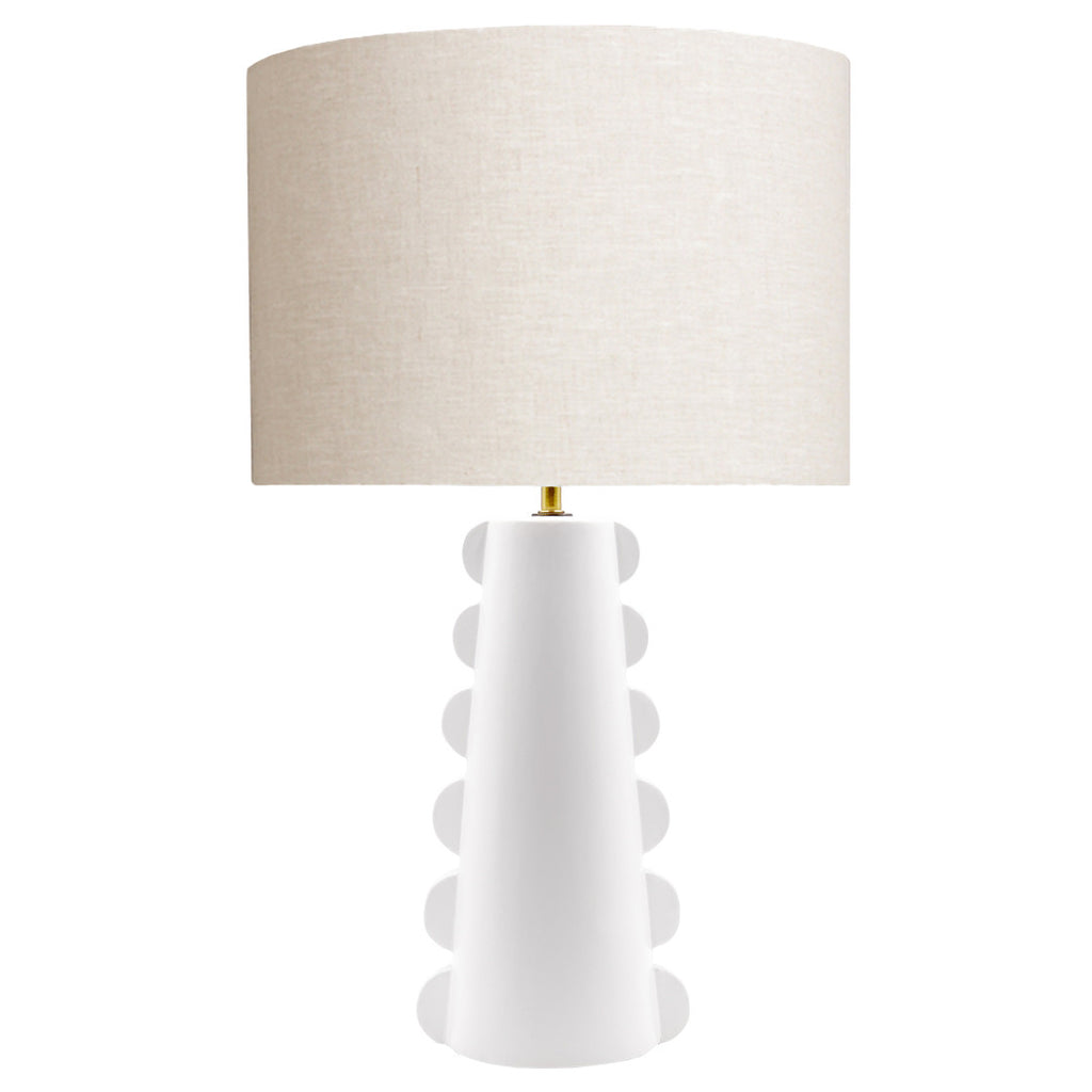 The Fontana Lamp stands tall and slim with a tapered shape featuring a symmetrical semi-circle design on two sides and finished with a natural drum shade.