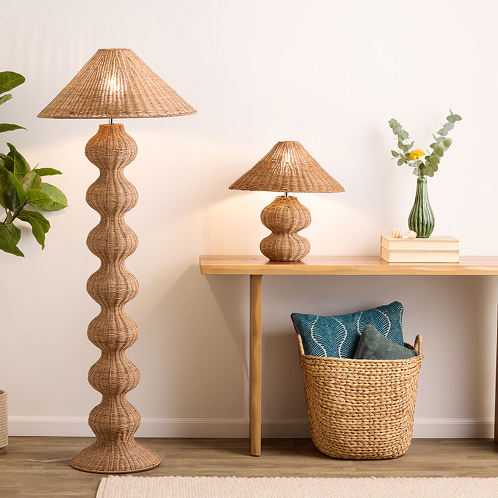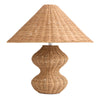 The warm tonal hue and tropical texture of renewable rattan brings the beauty of the natural world to any living room, home office, or bedroom. The sculptural curves of the base and taper of the shade are graced with subtle variations inherent to rattan, inviting the eye to admire its finely woven form.