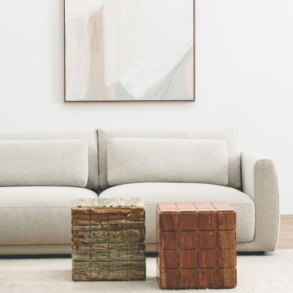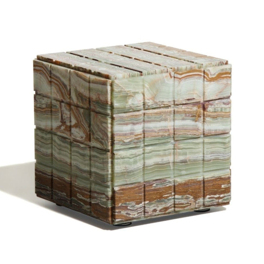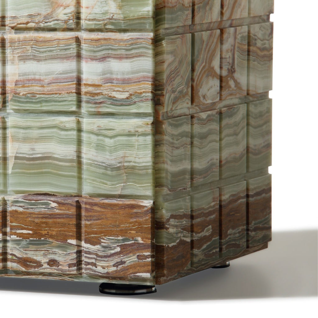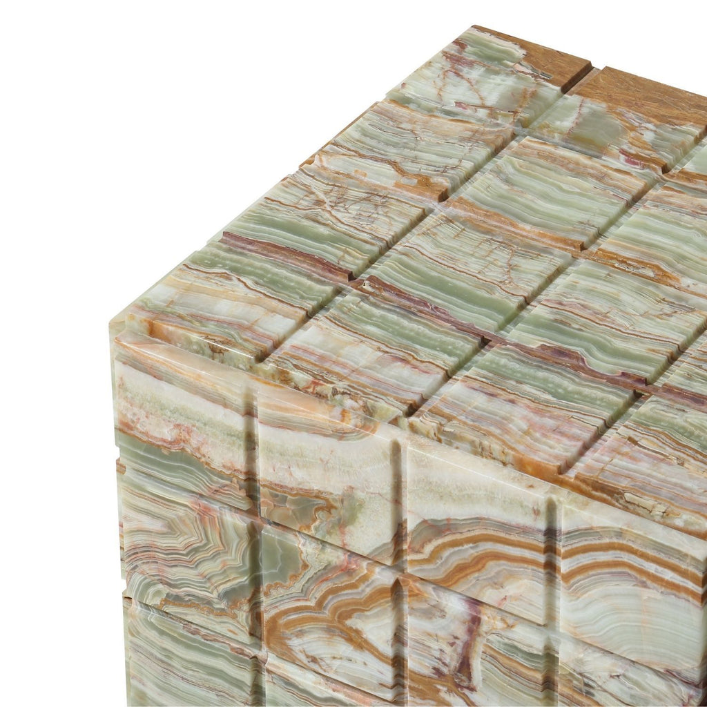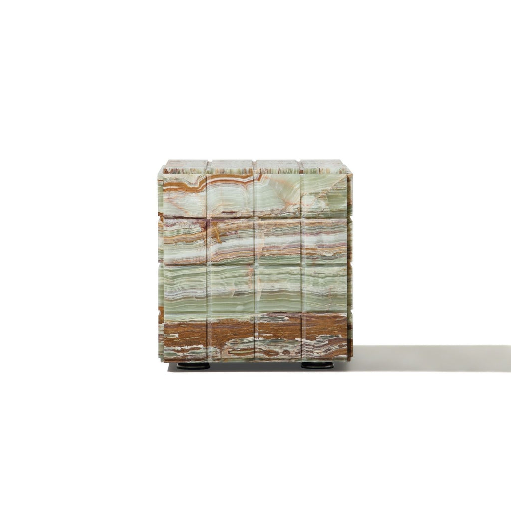 Crafted from premium marble, the Mesa Side Table embodies a bold square silhouette elevated by intricate slot detailing on the facade, adding a unique textural element that catches the eye.
