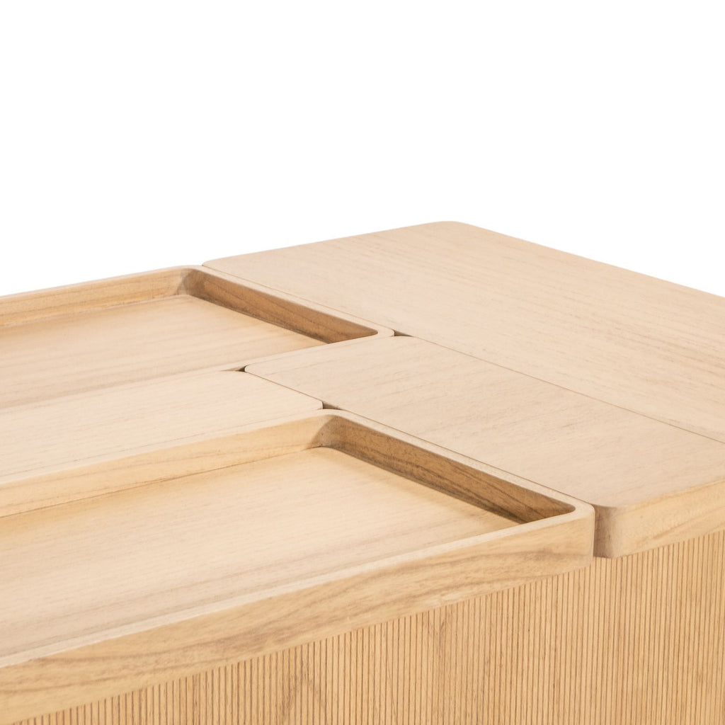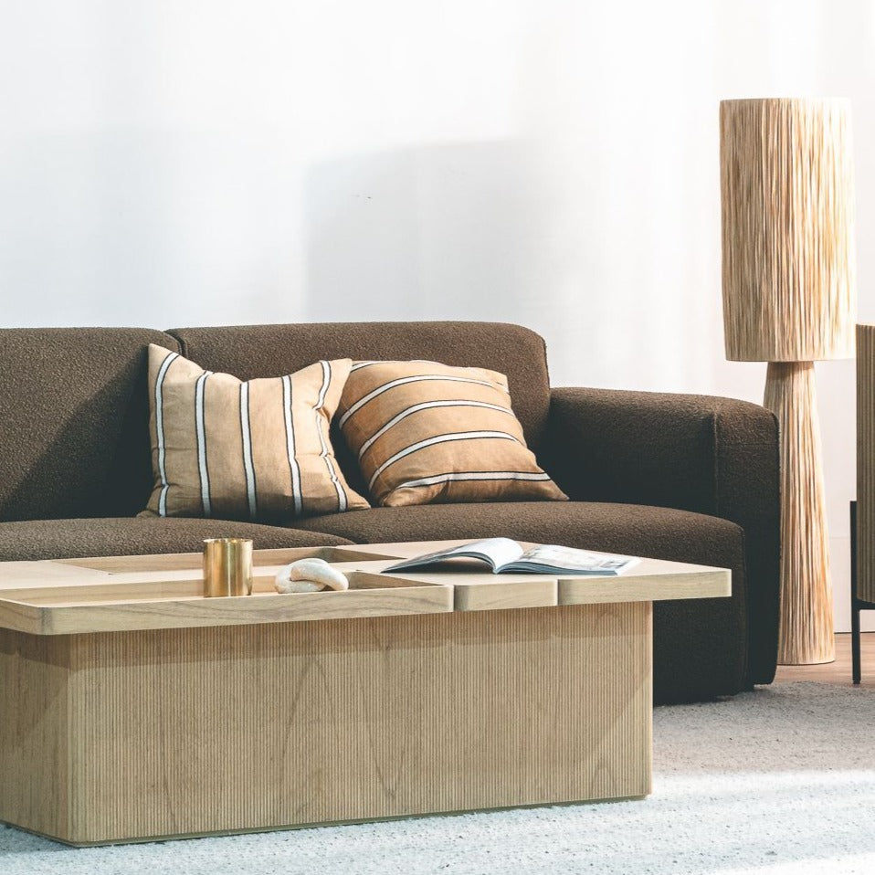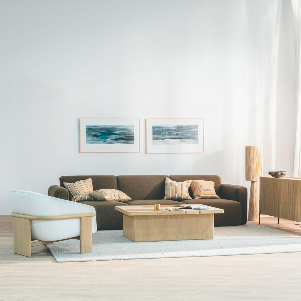 Its gracefully curved edges and fluted oak base create a captivating centerpiece, adding an aura of sophistication to any living room. With its timeless design and versatile appeal, Moana is the perfect addition for enhancing the ambiance of your living space.