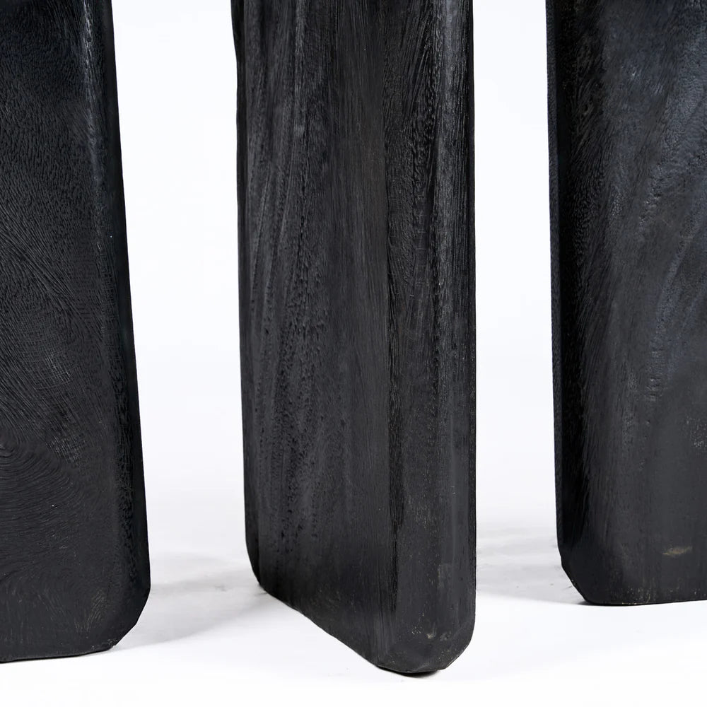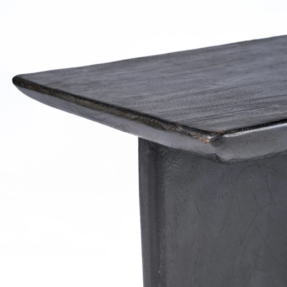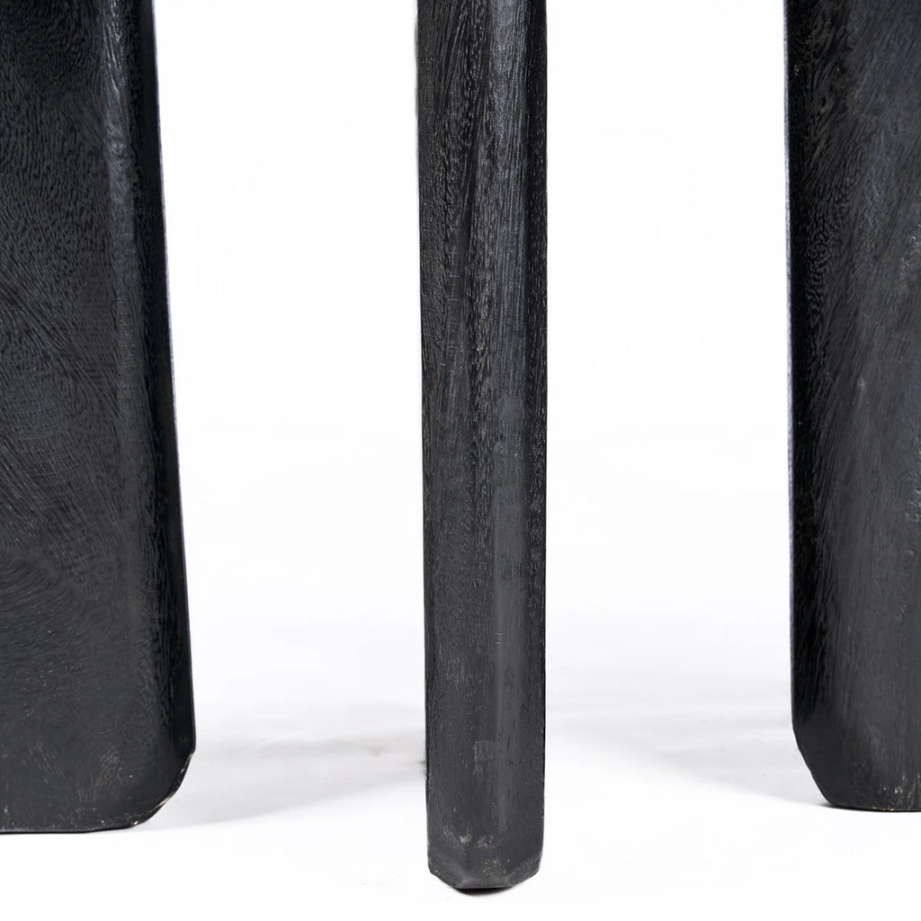 Crafted in Indonesia from sustainably sourced mango wood, each table reveals the trace of its maker through subtle texture and shifting grain. The matte black finish softens the geometry, giving the piece an organic warmth that deepens with time and use.