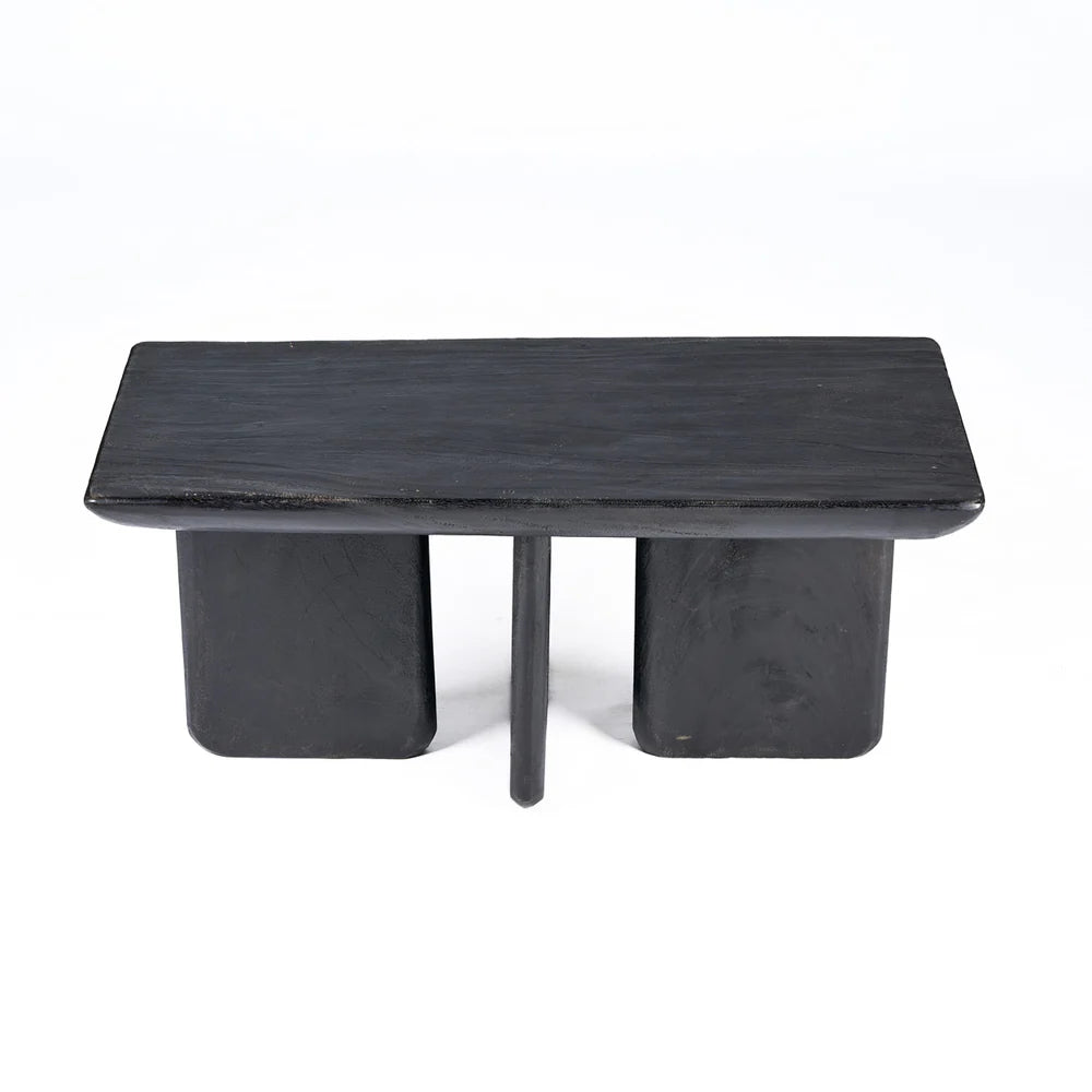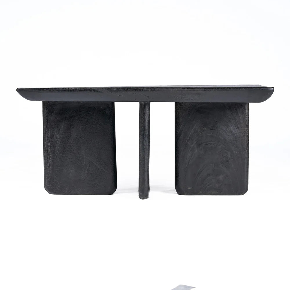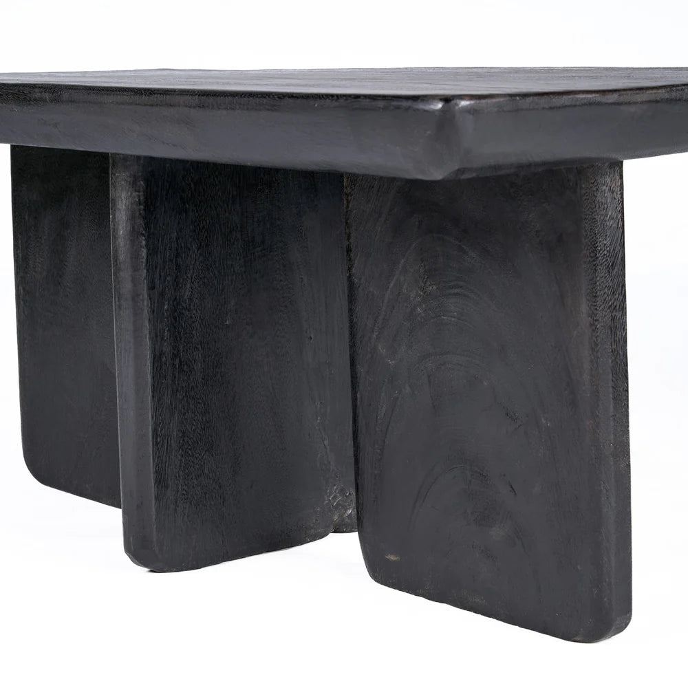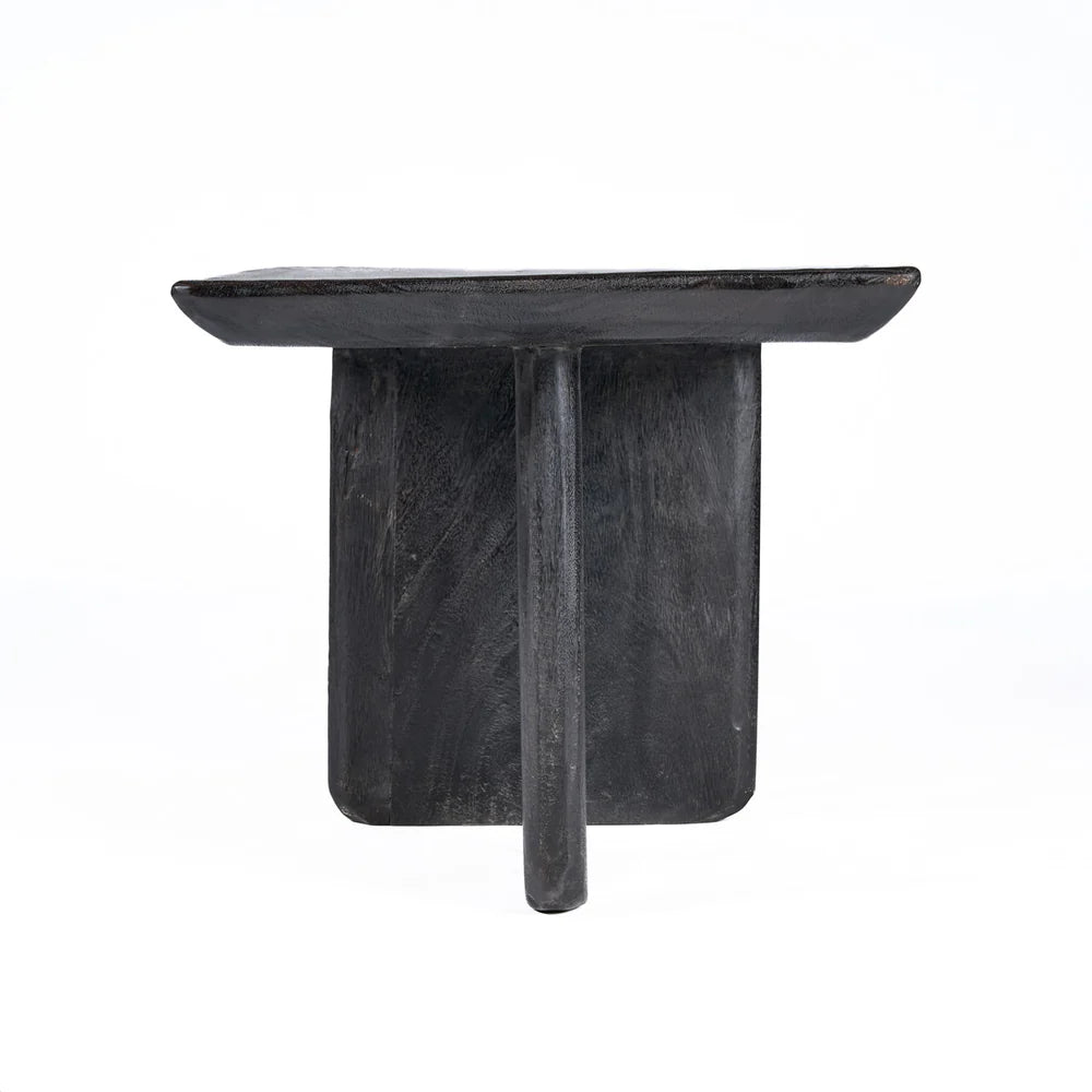 Crafted in Indonesia from sustainably sourced mango wood, each table reveals the trace of its maker through subtle texture and shifting grain. The matte black finish softens the geometry, giving the piece an organic warmth that deepens with time and use.