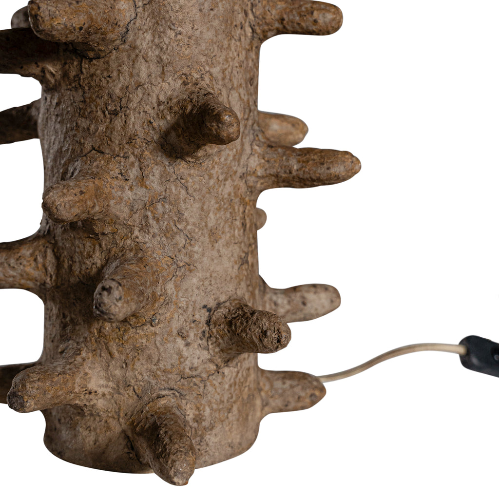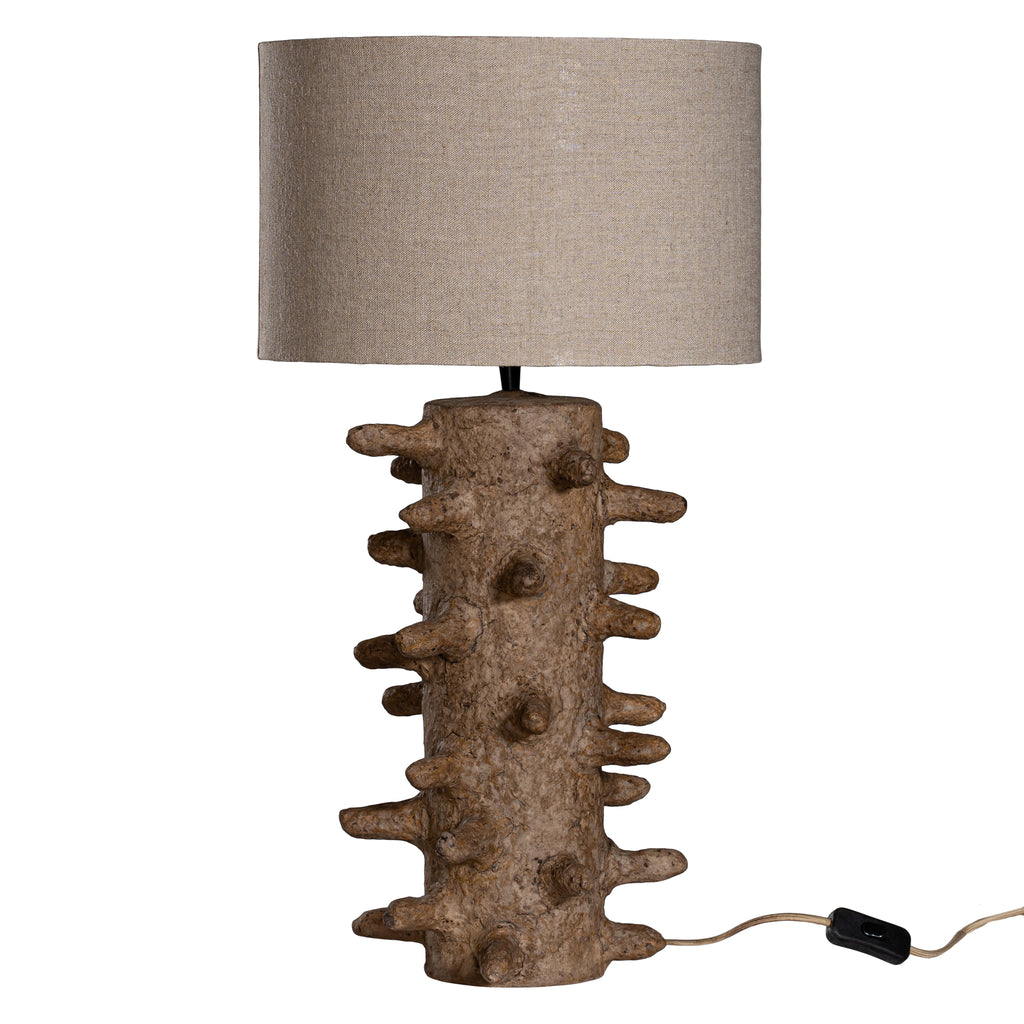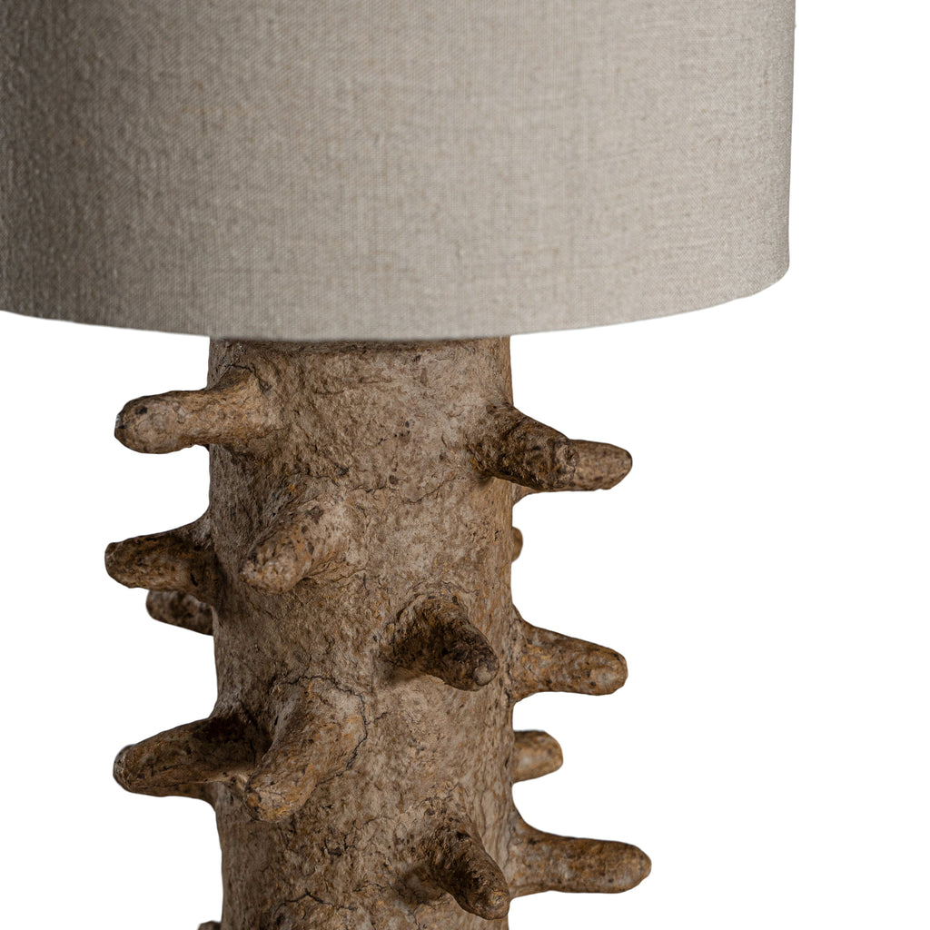 • Materials: Hand-crafted papier-maché base, 100% linen shade