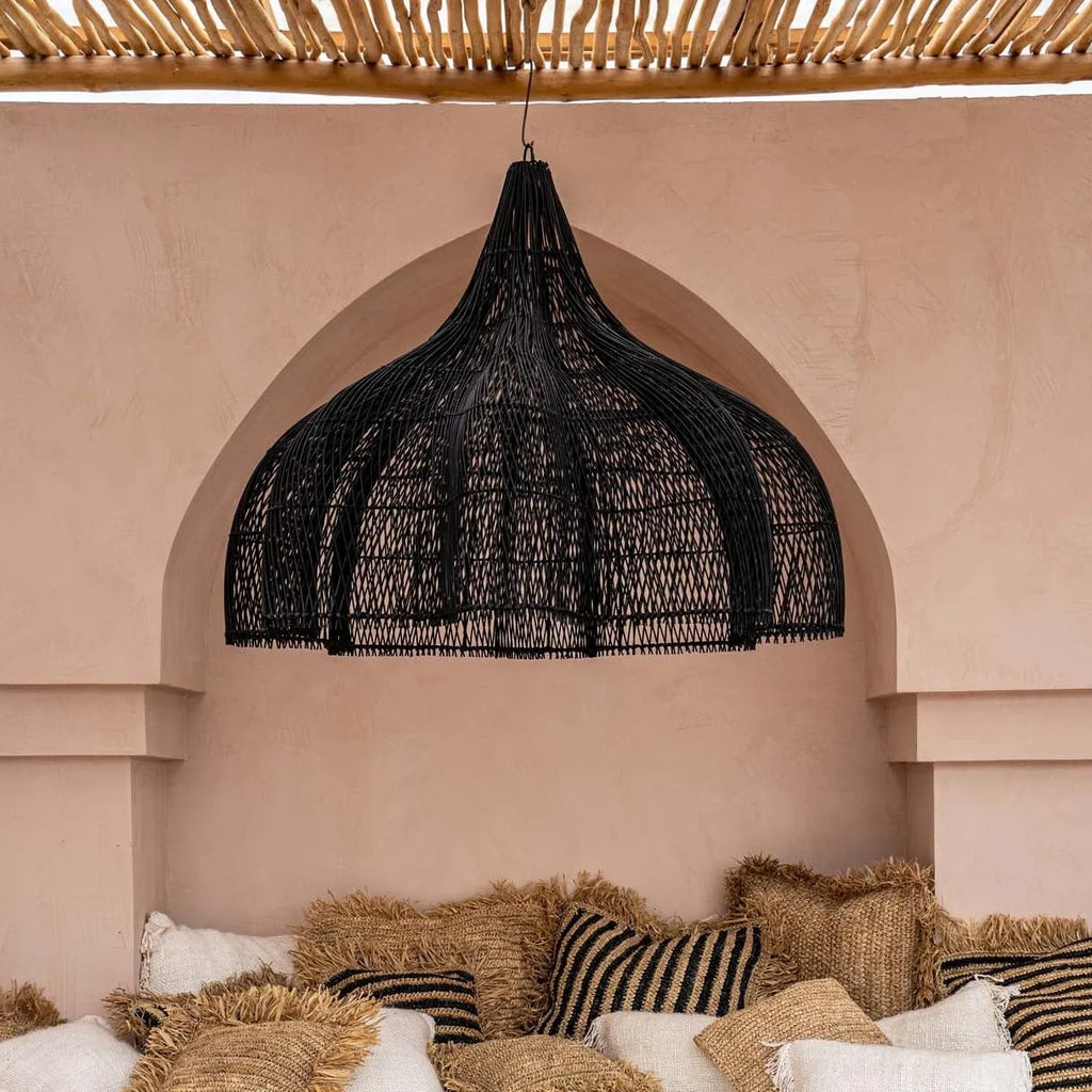 This amazing pendant lamp made of rattan has an exceptional shape with its beautiful boho style. An extraordinary decorative pendant lamp that will suit any interior or exterior covered room. A huge imposing and eye-catching lamp!