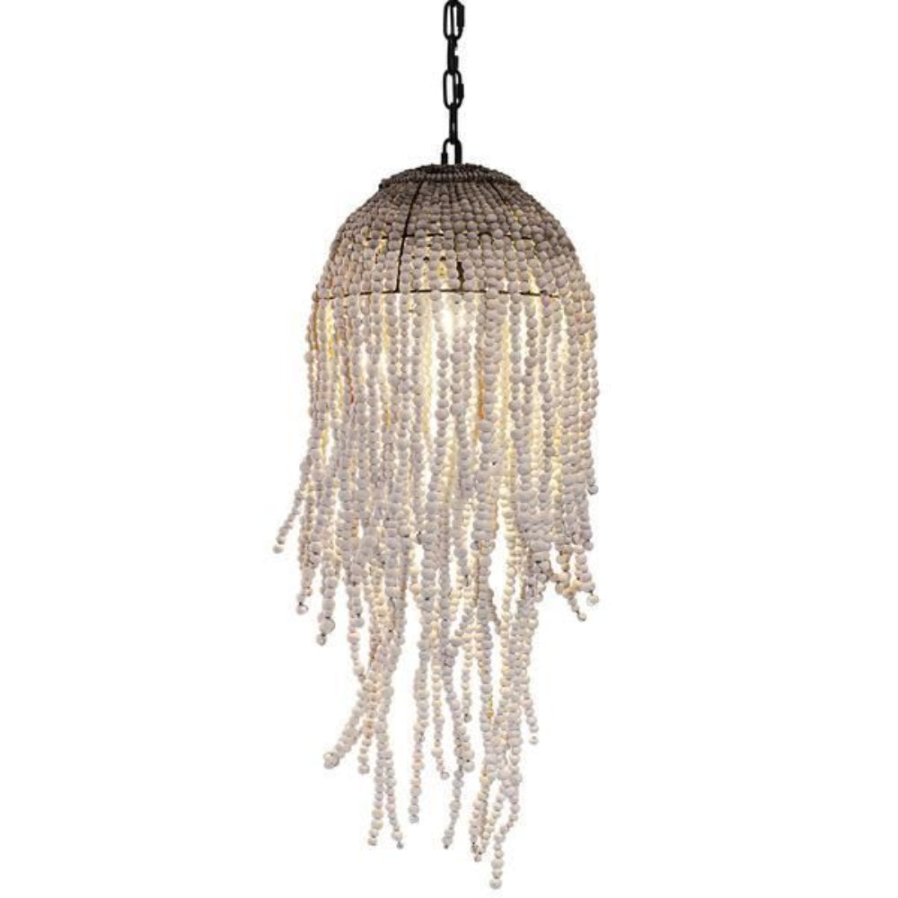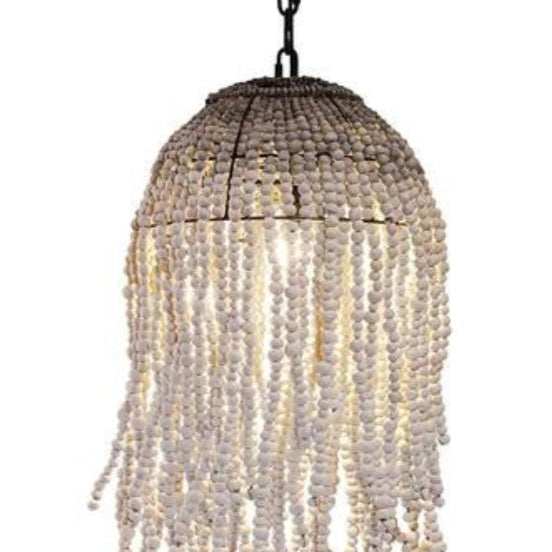 Each clay bead that makes up the Willow Pendant is hand rolled using raw clay. They are sun dried, kiln fired and dip-dyed. They are then masterfully strung onto their own unique iron frame. This hand made process ensures that no two pieces will ever be the same.