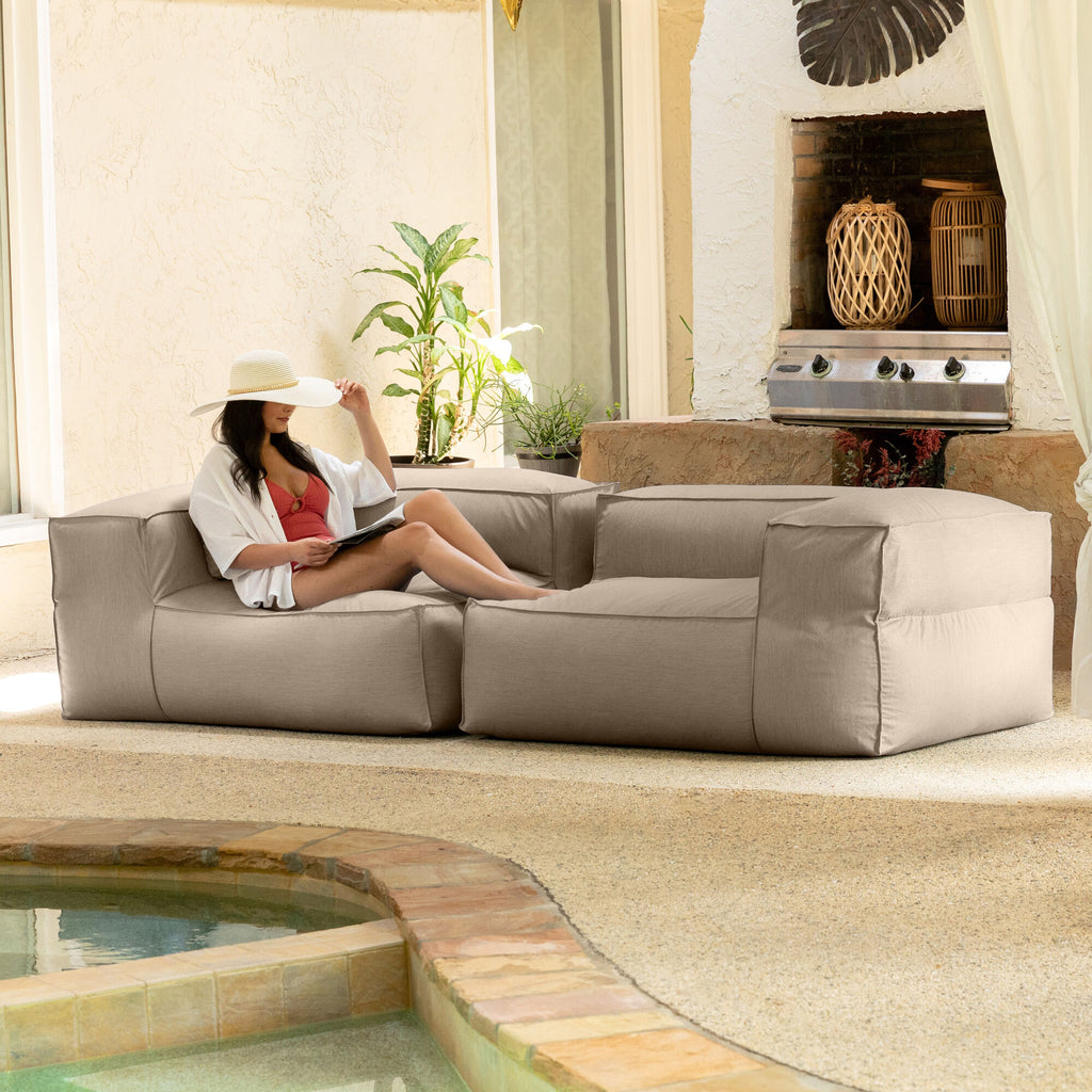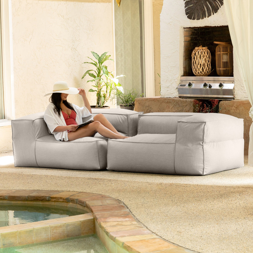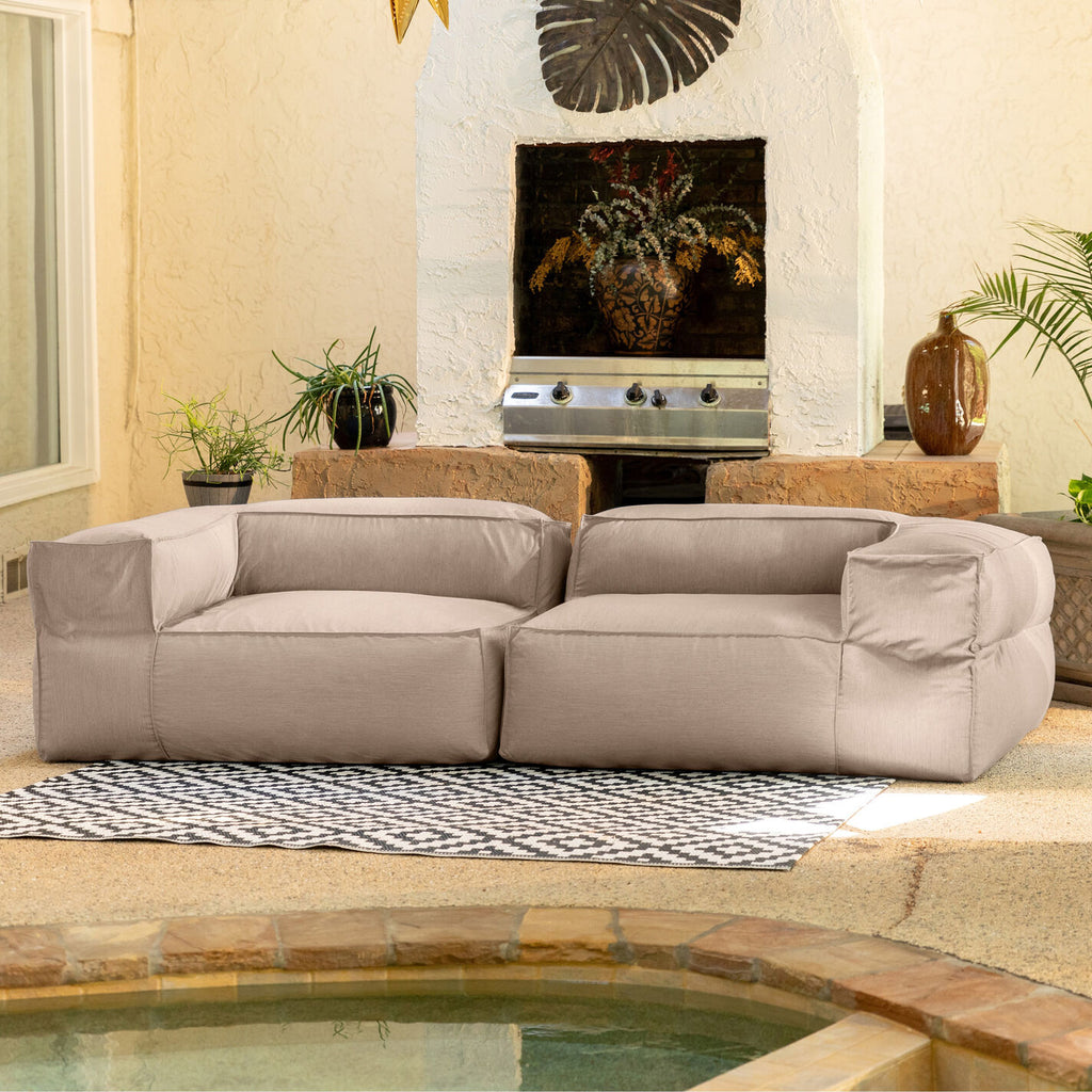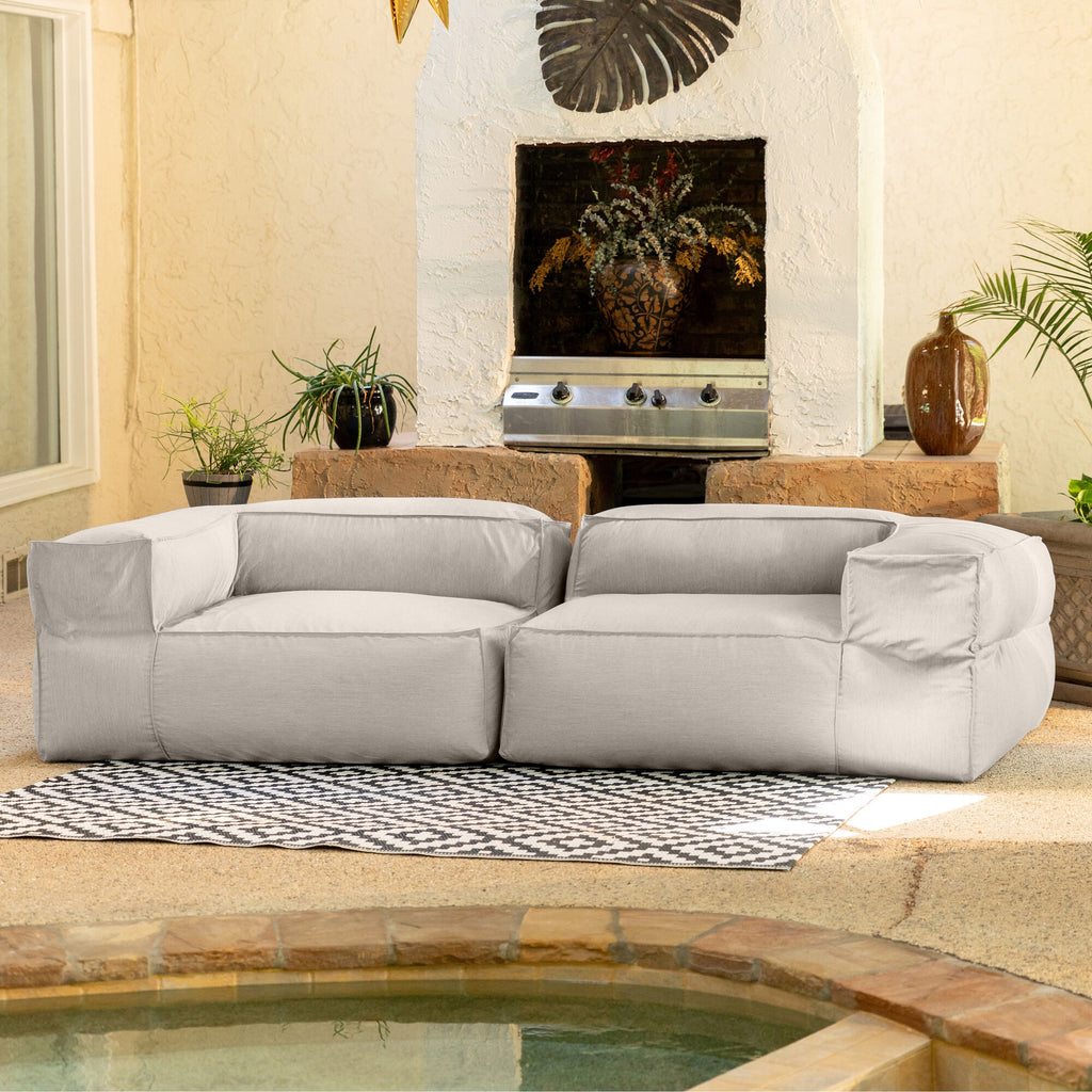 Available in a selection of heathered colors, this modular loveseat is composed with two corner-end chairs that can be used as separate seats or paired with other Meelah pieces to create a cozy seating arrangement. Perfect for the porch, deck or poolside, this durable bean-bag loveseat is just as luxurious indoors.