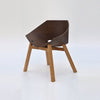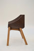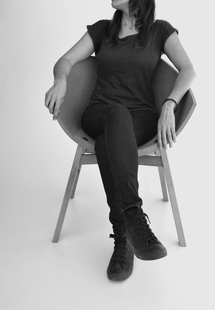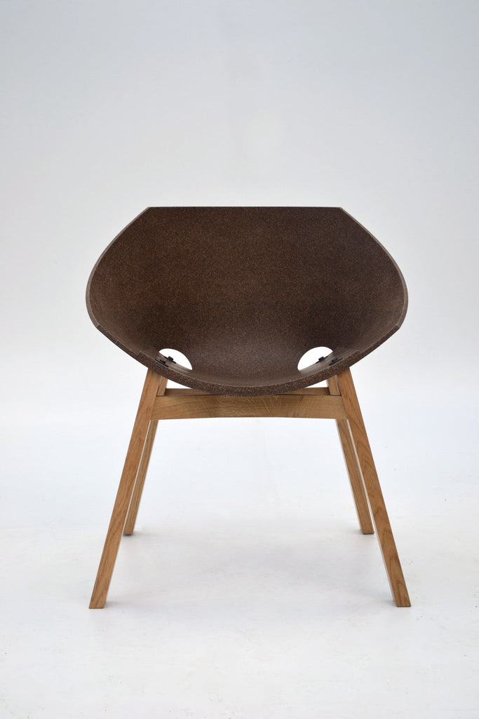 Cork makes for a comfortable seat structure that not only supports your body weight, it conforms to your body as you lean back. Cork is lightweight and is a sustainable material that can easily be recycled making it the perfect material choice. Four layers of 4mm thick cork are pressed flat together using a water-based glue. The shape is cut out, pulled together in place, and glued for extra strength. The natural cork happens to be the same color as the oak wooden legs creating continuity. Four simple screws connect the seat to the legs.