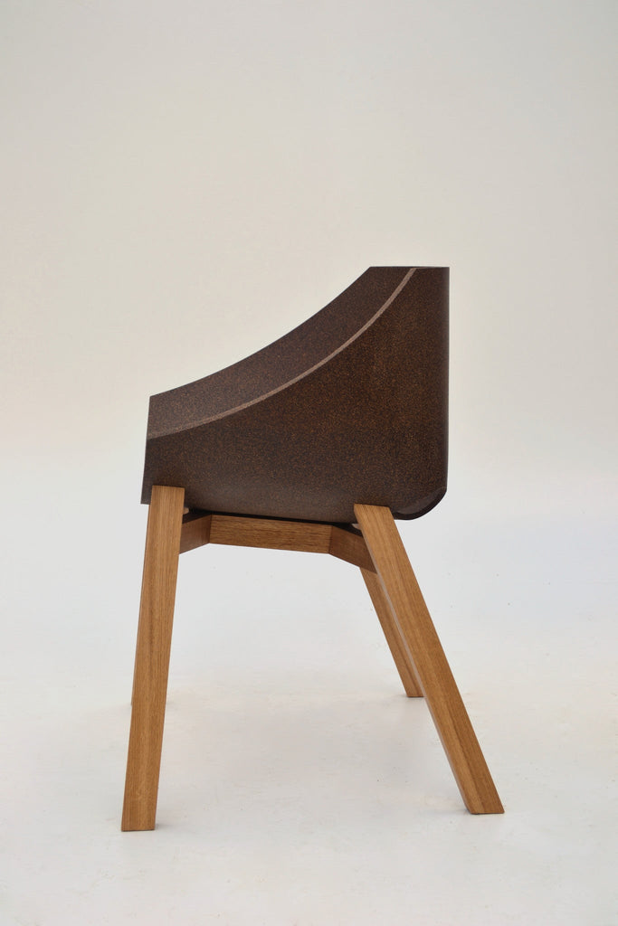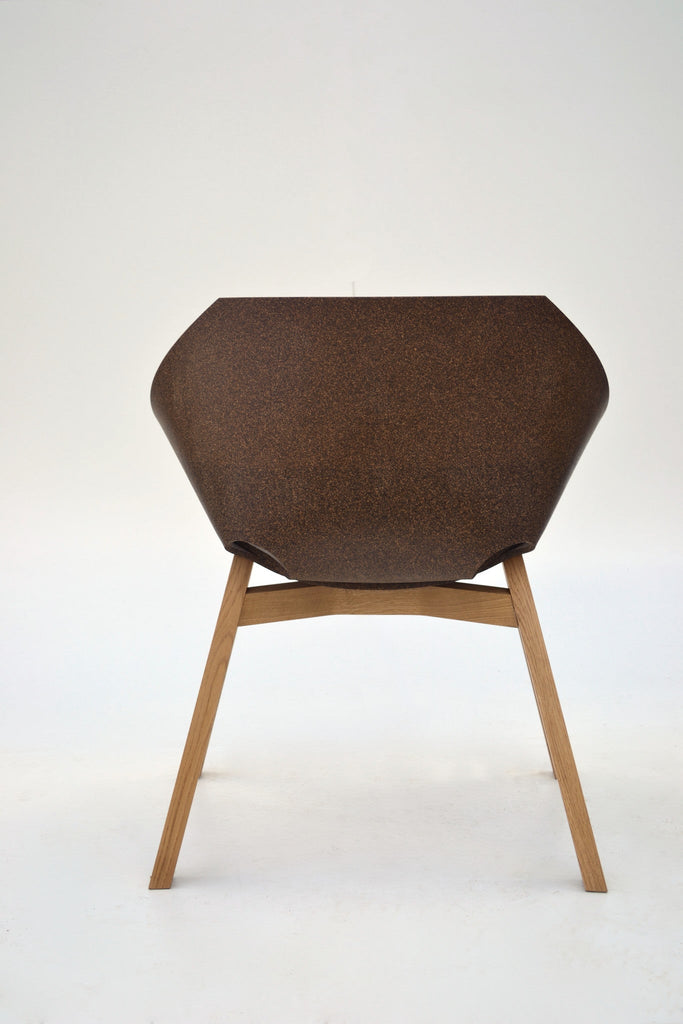 Cork is quite flexible and strong at the same time, and this chair decided to push both of these properties to the limit. The shell rests on a solid oak stool, resulting in a very attractive design. To protect the cork, our green designer applies water-based varnish suitable for hard wearing surfaces such as cork floors, it is very flexible and makes the chair highly durable.