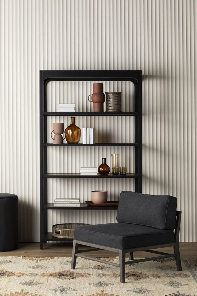 With its elegant low profile, the Grayson Lounge Chair upholstered in a charcoal cotton/poly and its smokey stained oak frame will bring the best of both form and function wherever it’s used.