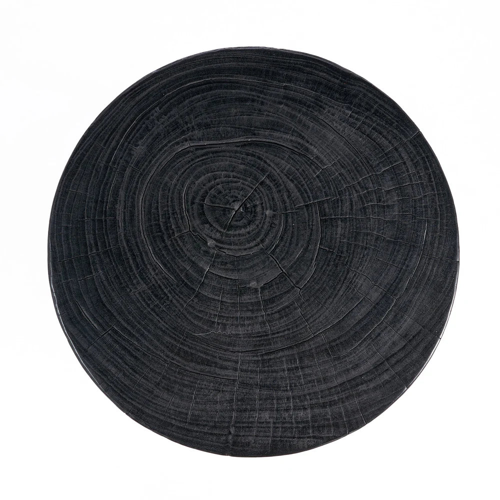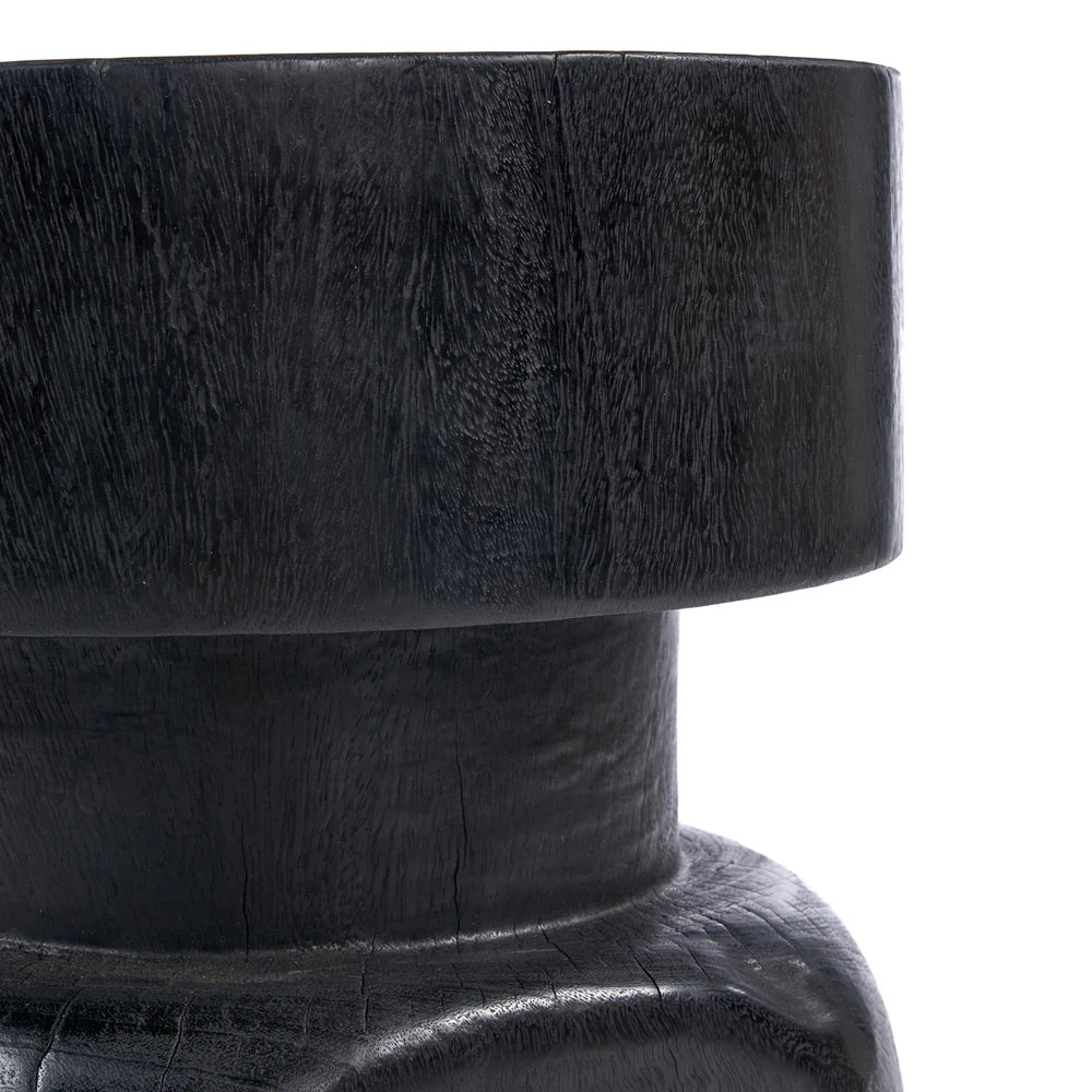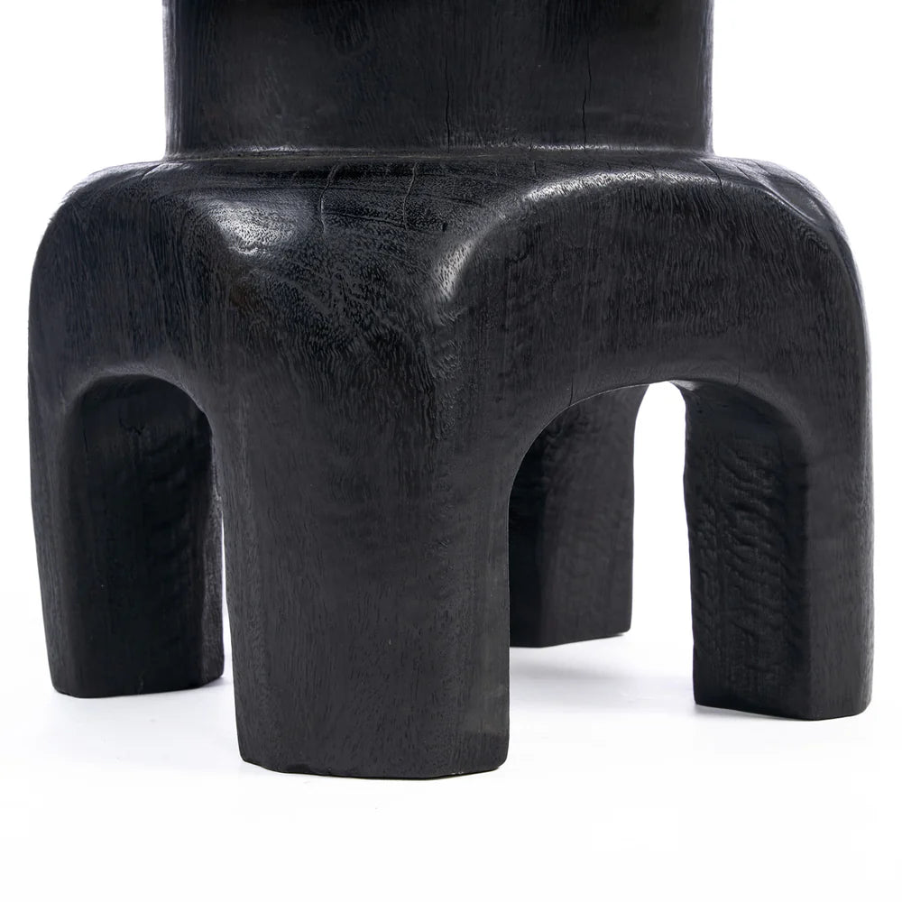 Stillness and structure meet in the Squat Side table / Stool, a black wooden stool that balances quiet strength with architectural poise. Its circular seat and curved foundation create a sense of weight and calm, lending an organic rhythm to any interior.