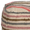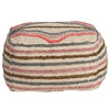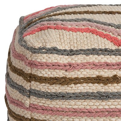The Dubar Ottoman is a natural ottoman featuring a braid stitch pattern in a fresh colour palette of pink, musk, khaki and dove grey and complimentary striped sides