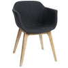 The Loft Dining Chair is a modern style moulded chair in dark grey linen blend fabric with contrast stitching and timber legs. The timber legs are finished with an antique wash.