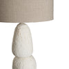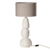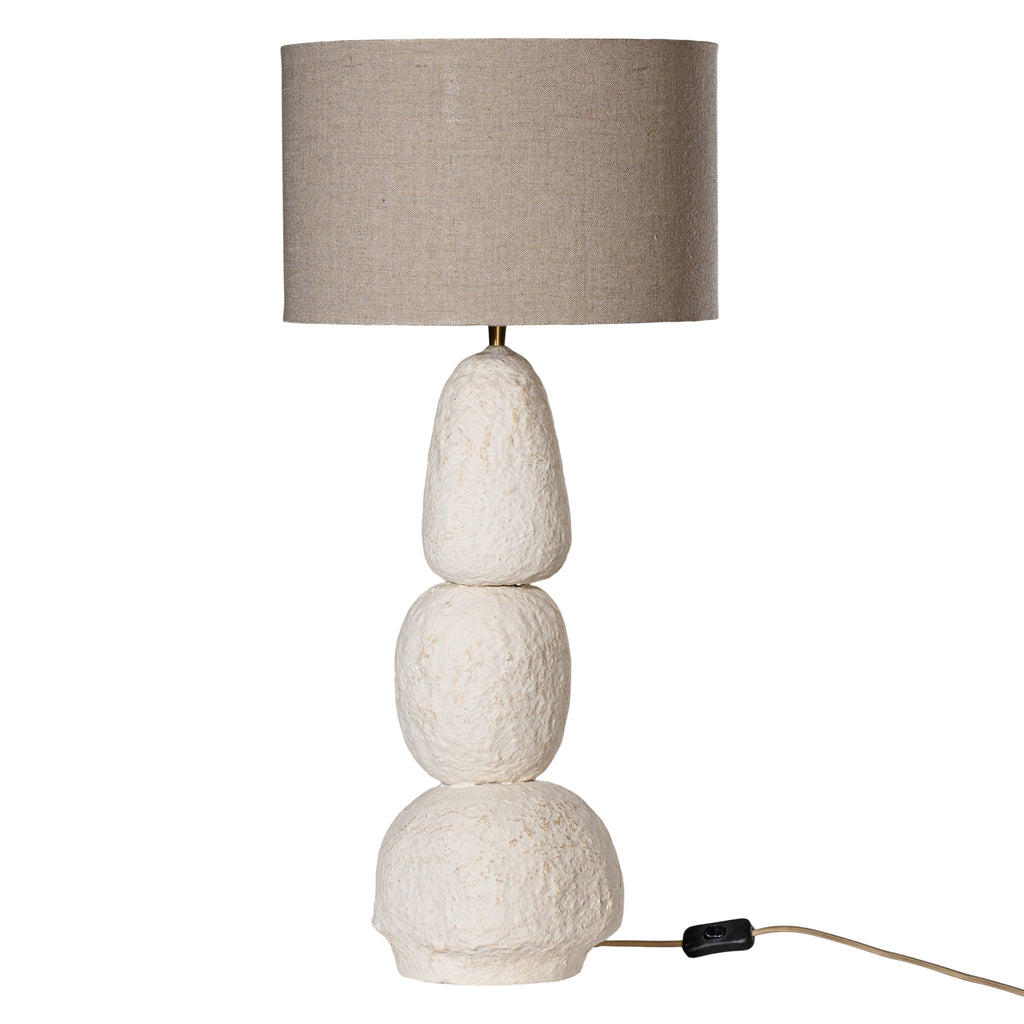 The base is handcrafted from eco-friendly papier-maché, the shade is 100% linen