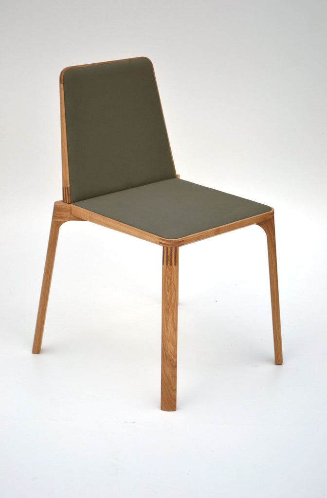 Stack is an upholstered chair produced by the latest CNC technology and finished by hand. The upholstering offers a nice and comfortable touch to this minimalist chair. As an added bonus, the upholstered chairs are also stackable - a unique feature rarely seen in upholstered seating. Both the upholstered Stack chair and its set companion, the large Giro Table, feature beautifully intricate finger joinery. Advancing both form and function, the traditional technique allows for hardware-free assembly (not to mention disassembly) without sacrificing sturdiness. Both design details make the set especially great for space saving.